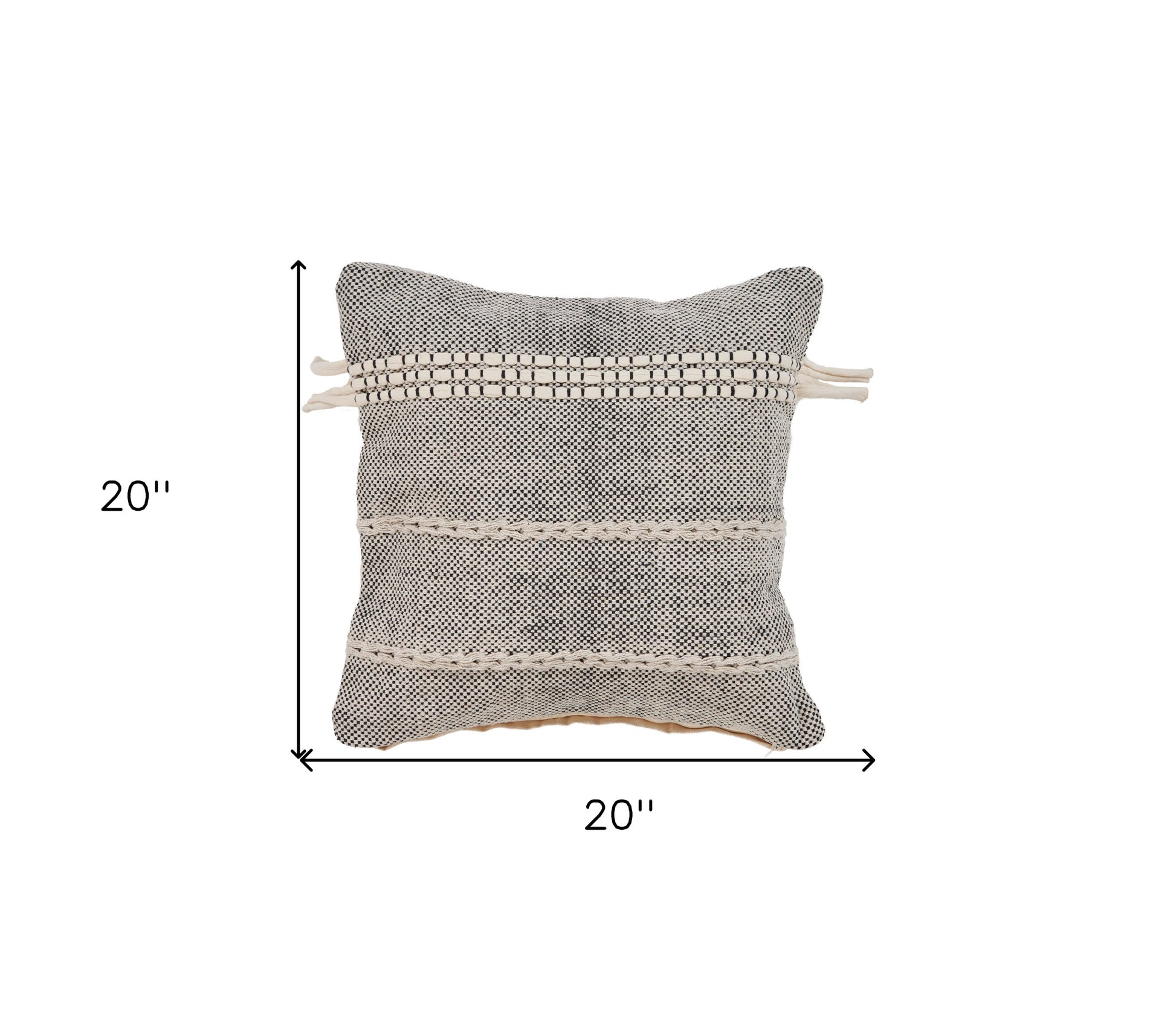 20" X 20" Black And Off-White 100% Cotton Striped Zippered Pillow