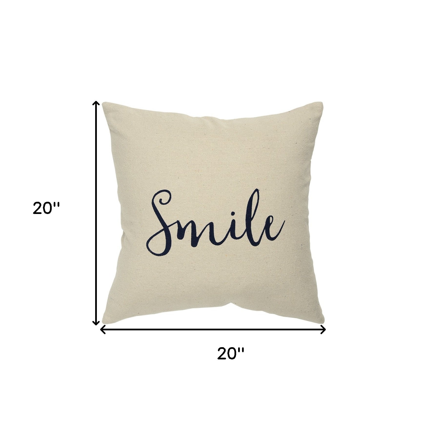 This 20-inch x 20-inch black and taupe cotton zippered pillow will add a beautiful decorative accent to your decor. This super soft decorative pillow is expertly made of high grade, long lasting 100% cotton in a black and taupe coloration. Super soft and built to hold its shape, this polyfill pillow is a great option. Emblazoned with the text smile this pillow adds some visual interest and decor to your space. For anyone that loves to decorate or accent their space with color and texture. Decorative pillows are a great way to change up the look and feel of your space easily and quickly. 20-inch H x 20-inch W x 6.25-inch D