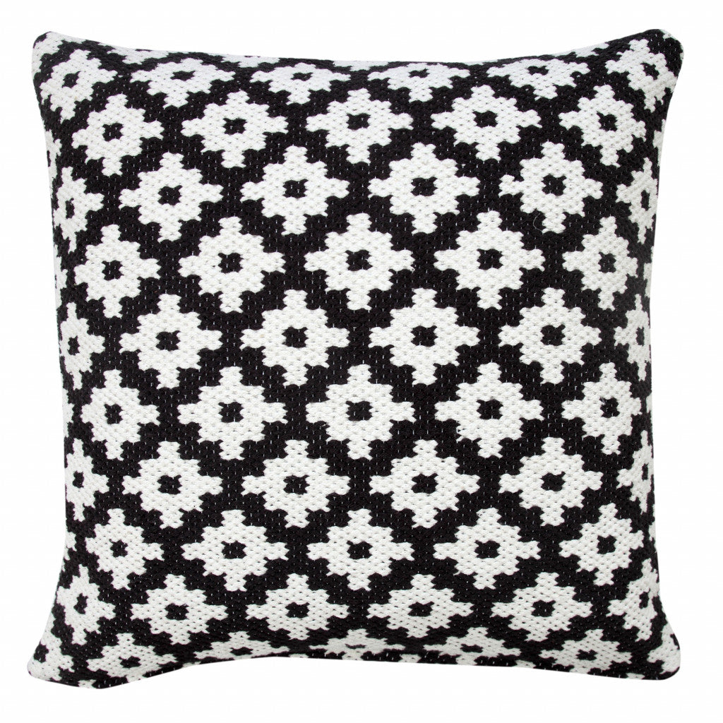 20" X 20" Black And White 100% Cotton Geometric Zippered Pillow