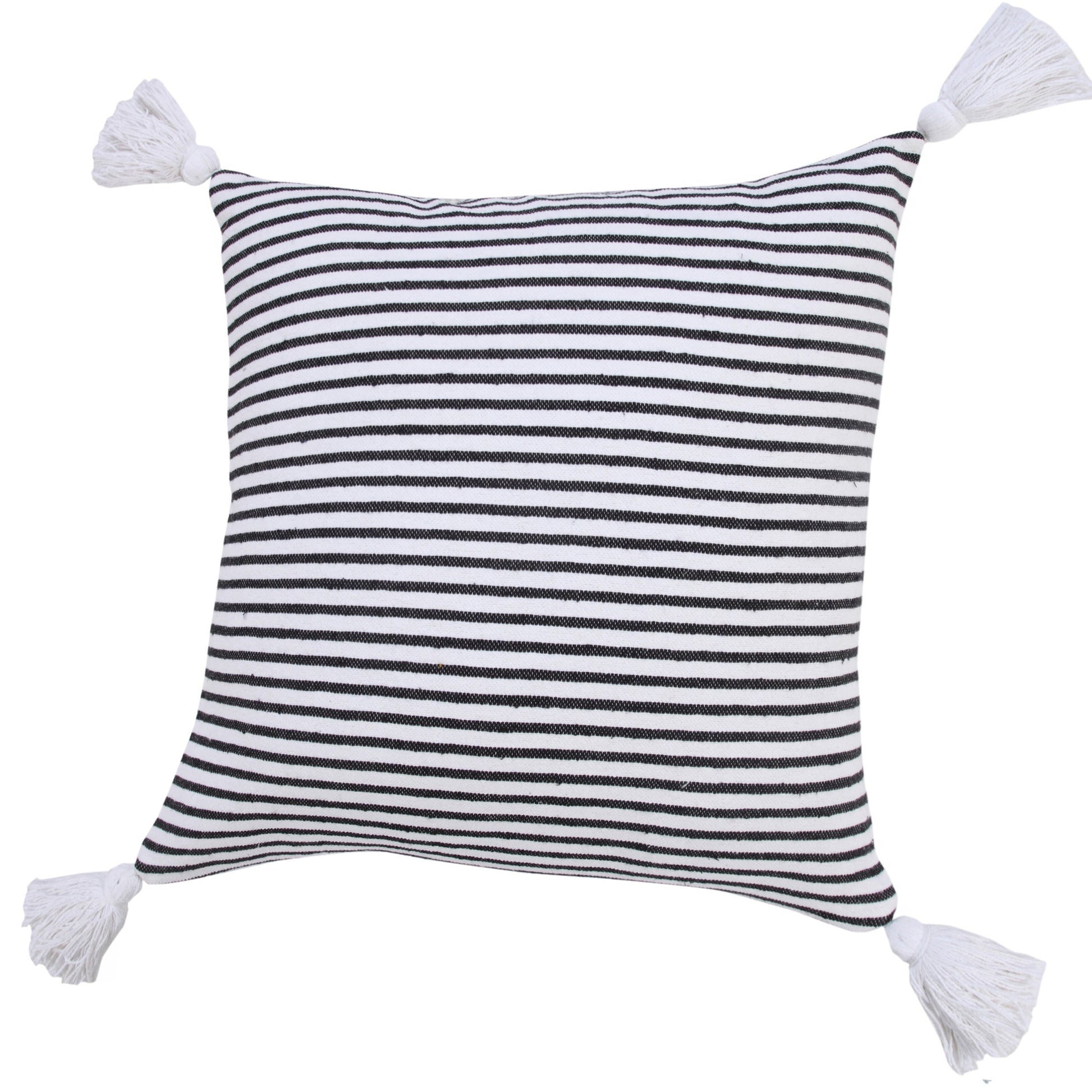 Bring a bit of fashion and zip to your space with this eye-catching and comfy 20" x 20" black and white 100% cotton striped zippered pillow. Soft and textural black and white 100% cotton has been used to make this pillow look and feel like a real treasure. For anyone that loves to decorate or accent their space with color and texture. Decorative pillows are a great way to change up the look and feel of your space easily and quickly. 4" H x 20" W x 20" D