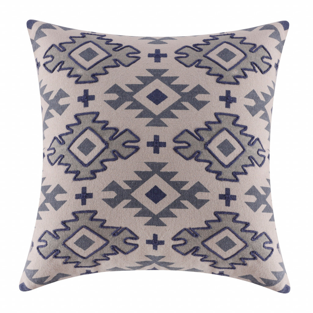 20" X 20" Blue And Gray 100% Cotton Geometric Zippered Pillow
