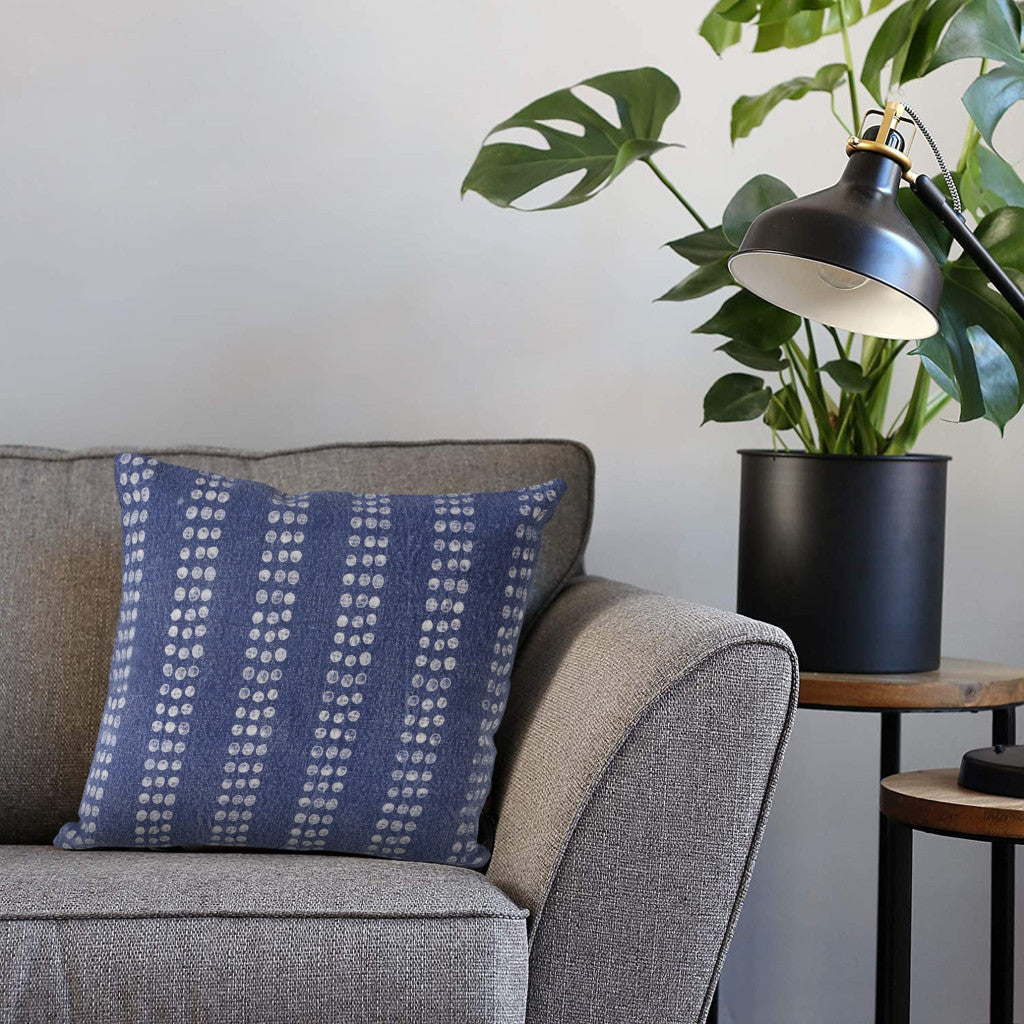 20" X 20" Blue and White Striped Cotton Zippered Pillow