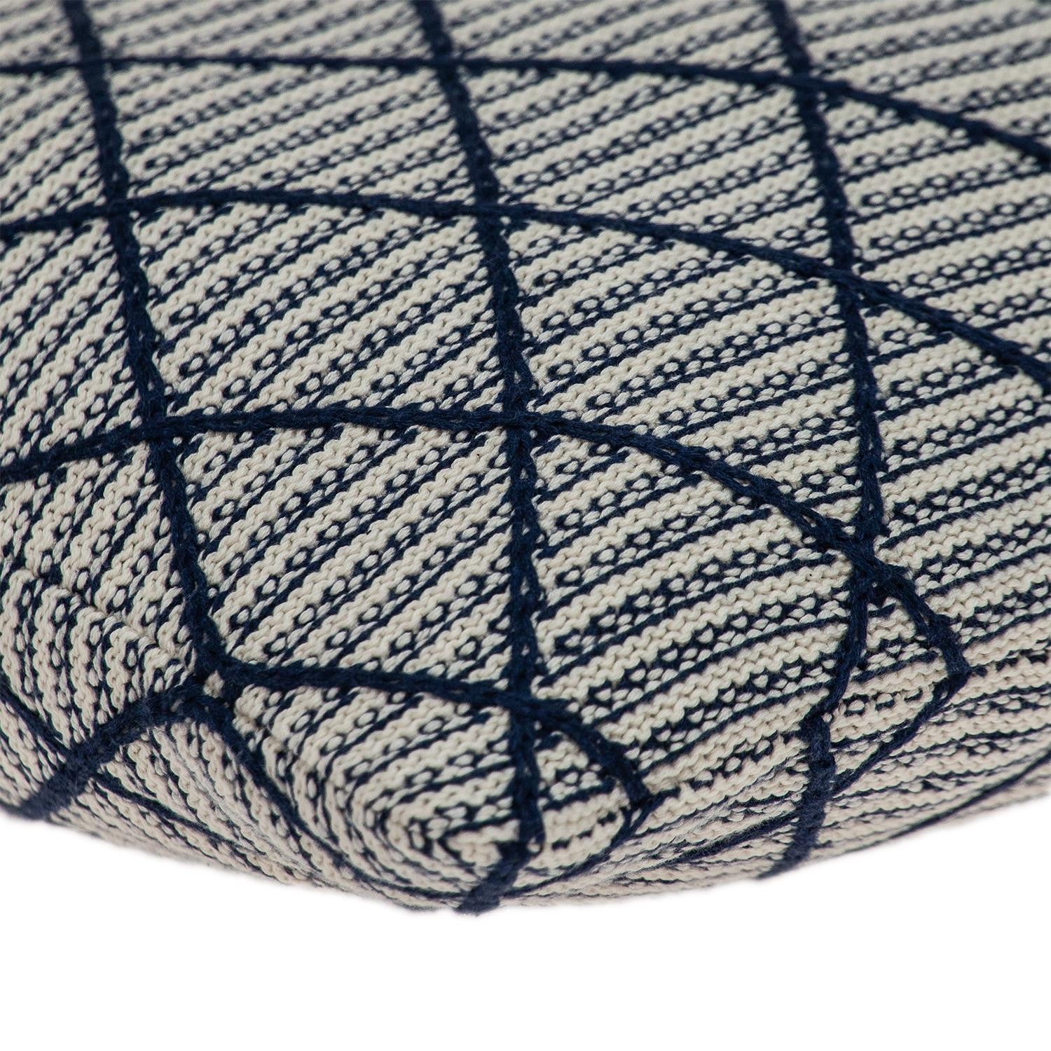 Bring a bit of fashion and zip to your space with this eye-catching and comfy 20" x 20" blue argyle transitional accent throw pillow. This off white/beige hued piece represents quality construction, expertly made from high grade 100% cotton. Makes a perfect decorative addition for anyone who loves a stylish look and feel. A great decorative accessory for your favorite chair, to accent your sofa, or to use as part of your bed ensemble. 20" H x 20" W x 4" D
