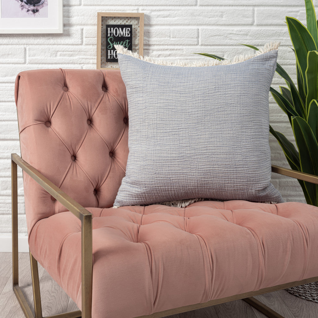 Unique and decorative, this comfortable 20" x 20" blue gray and cream 100% cotton zippered pillow will leave a lasting impression. Soft and textural blue gray and cream 100% cotton has been used to make this pillow look and feel like a real treasure. Great to use on its own or mix with other decorations for the perfect look. Decorative pillows are a great way to change up the look and feel of your space easily and quickly. 4" H x 20" W x 20" D