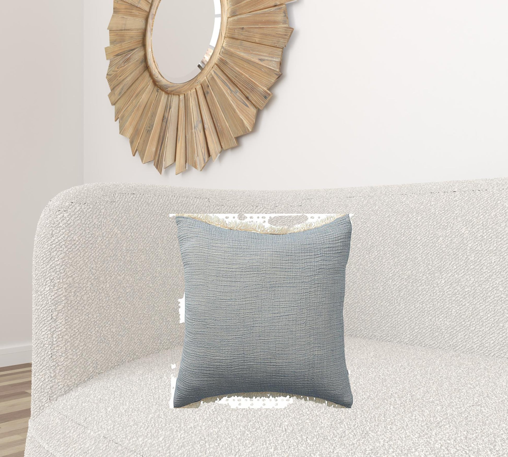 20" X 20" Blue Gray And Cream 100% Cotton Zippered Pillow