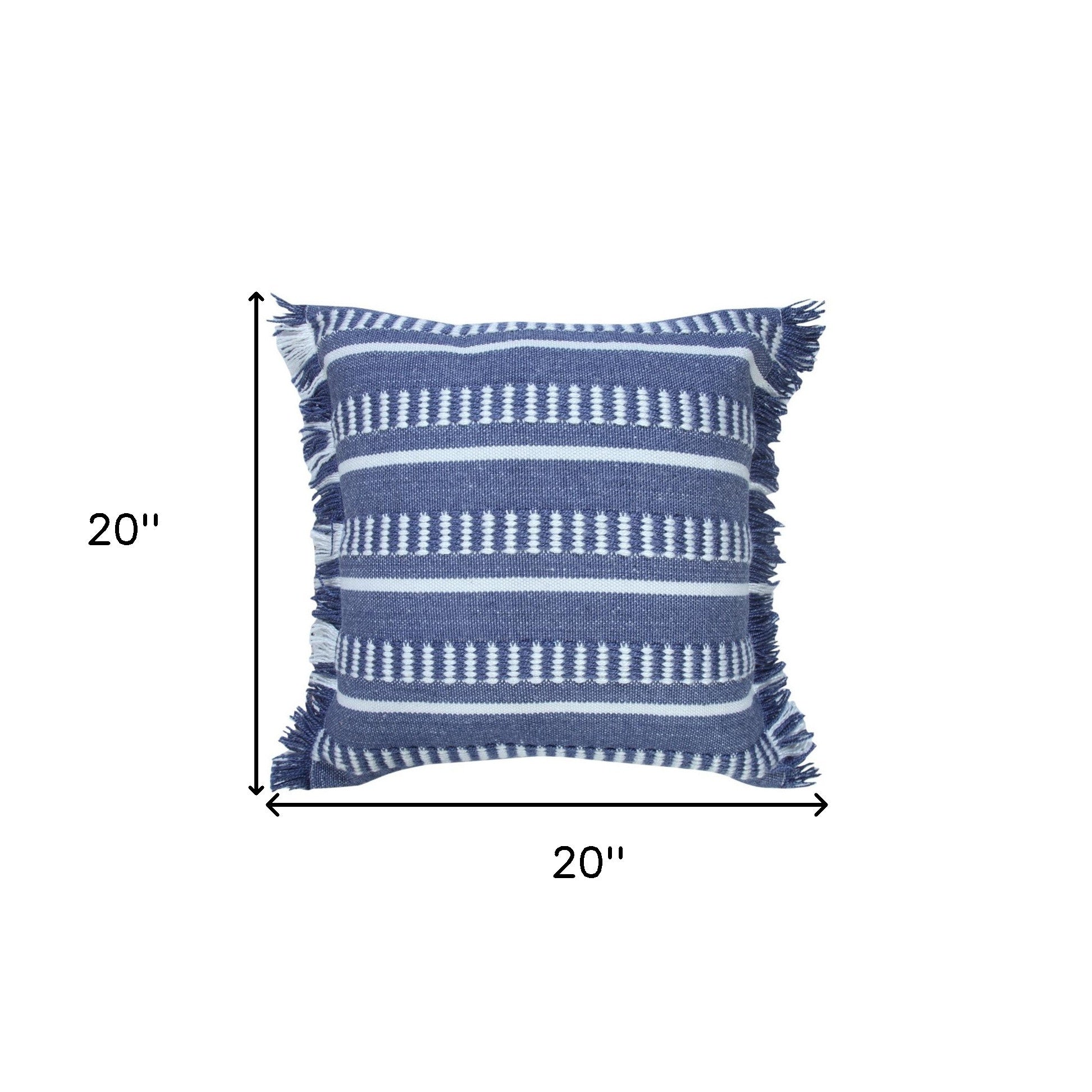 20" X 20" Blue Zippered Geometric Indoor Outdoor Throw Pillow