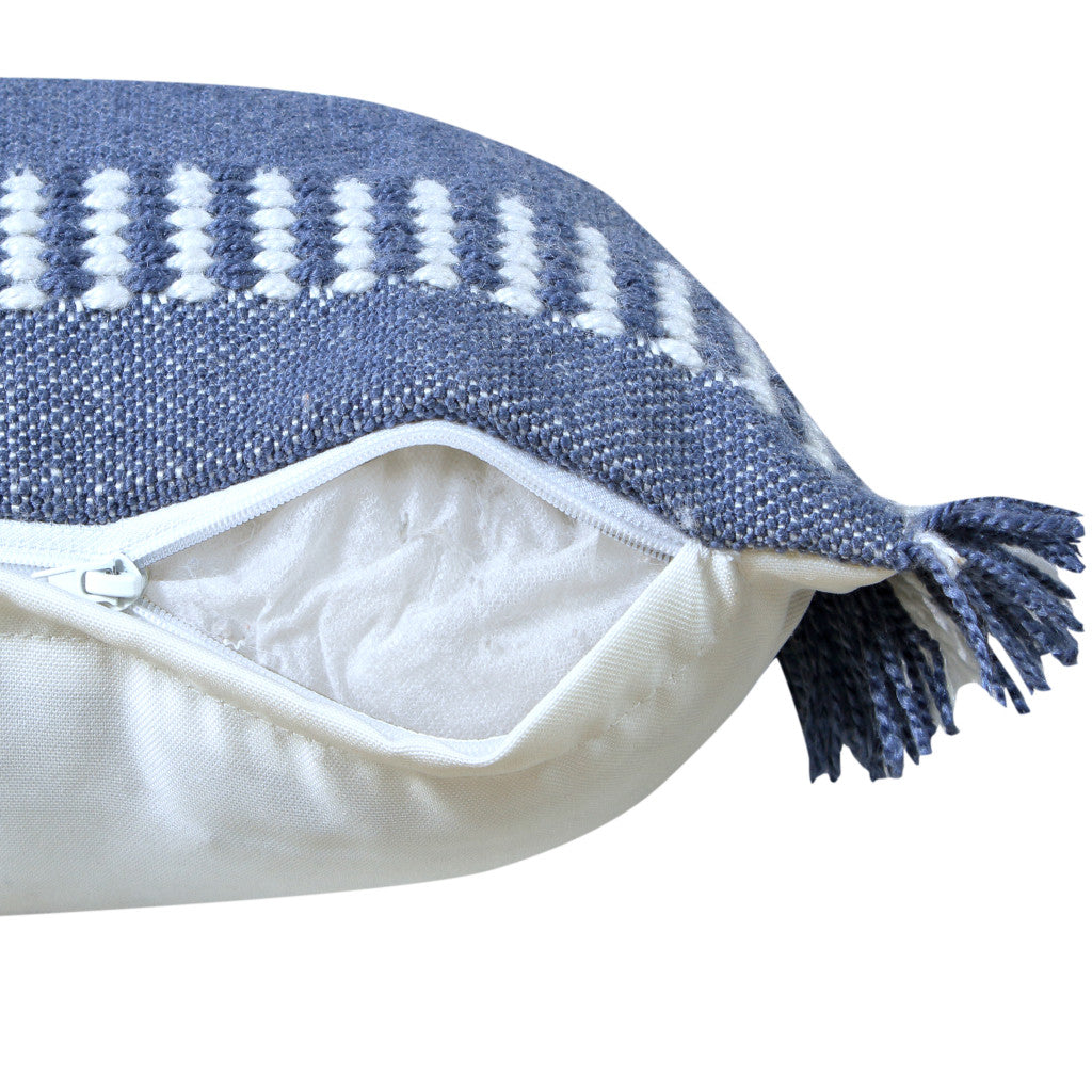 Bring a bit of fashion and zip to your space with this eye-catching and comfy 20" x 20" blue zippered geometric indoor outdoor throw pillow. This blue colored decorative pillow is made from high grade polyester that is durable and long lasting. Durable and rugged enough for outdoors but can still be used inside as well. Decorative pillows are a great way to change up the look and feel of your space easily and quickly. 4" H x 20" W x 20" D