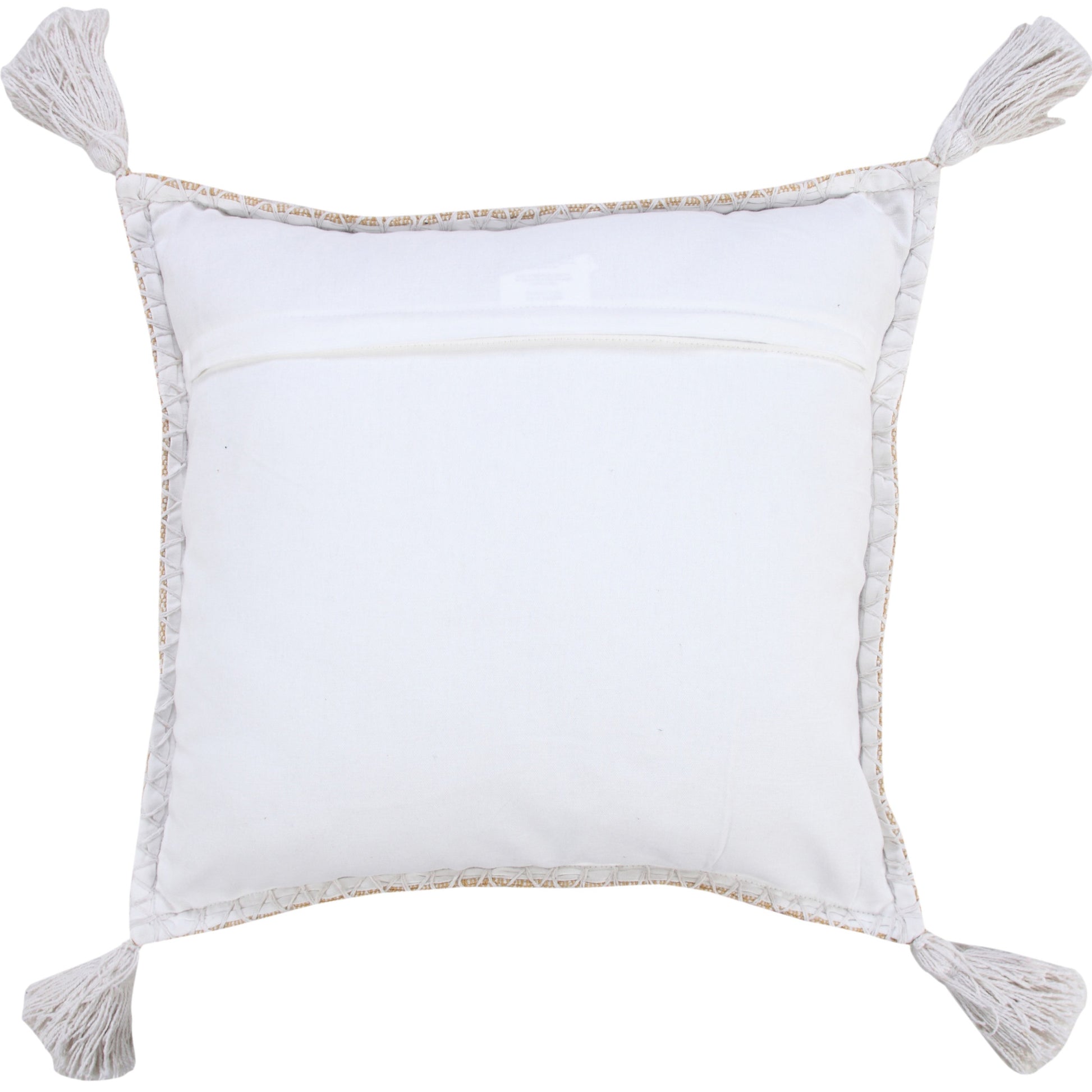 This 20-inch x 20-inch brown and white cotton zippered pillow with embroidery, tassels will add a beautiful decorative accent to your decor. Soft and textural brown and white 100% cotton has been used to make this pillow look and feel like a real treasure. This soft polyfill pillow not only is decorative but made to be comfy and cozy all day long. Great to use on its own or mix with other decorations for the perfect look. A great decorative accessory for your favorite chair, to accent your sofa, or to use as part of your bed ensemble. 20-inch H x 20-inch W x 4-inch D