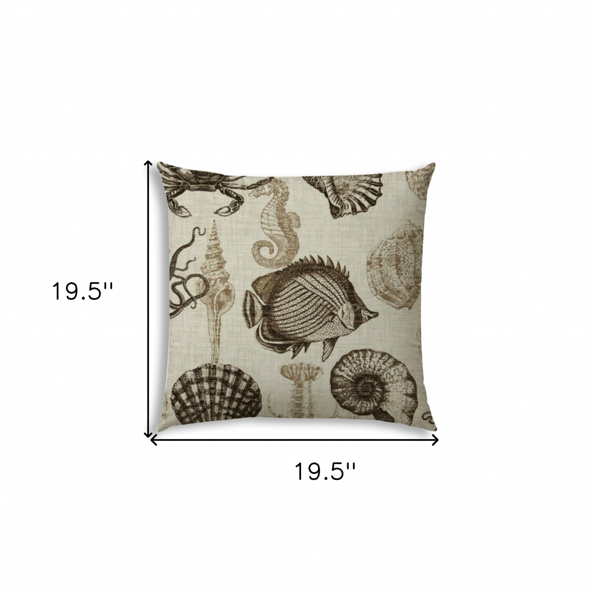 This 20" x 20" brown taupe and natural fish zippered polyester coastal throw pillow cover will add a beautiful decorative accent to your decor. This brown taupe and natural colored decorative accessory is made from high grade polyester that makes it soft and long lasting. Makes a perfect decorative addition for anyone who loves a stylish look and feel. A great decorative accessory for your favorite chair, to accent your sofa, or to use as part of your bed ensemble. 19.5" H x 19.5" W x 0.25" D