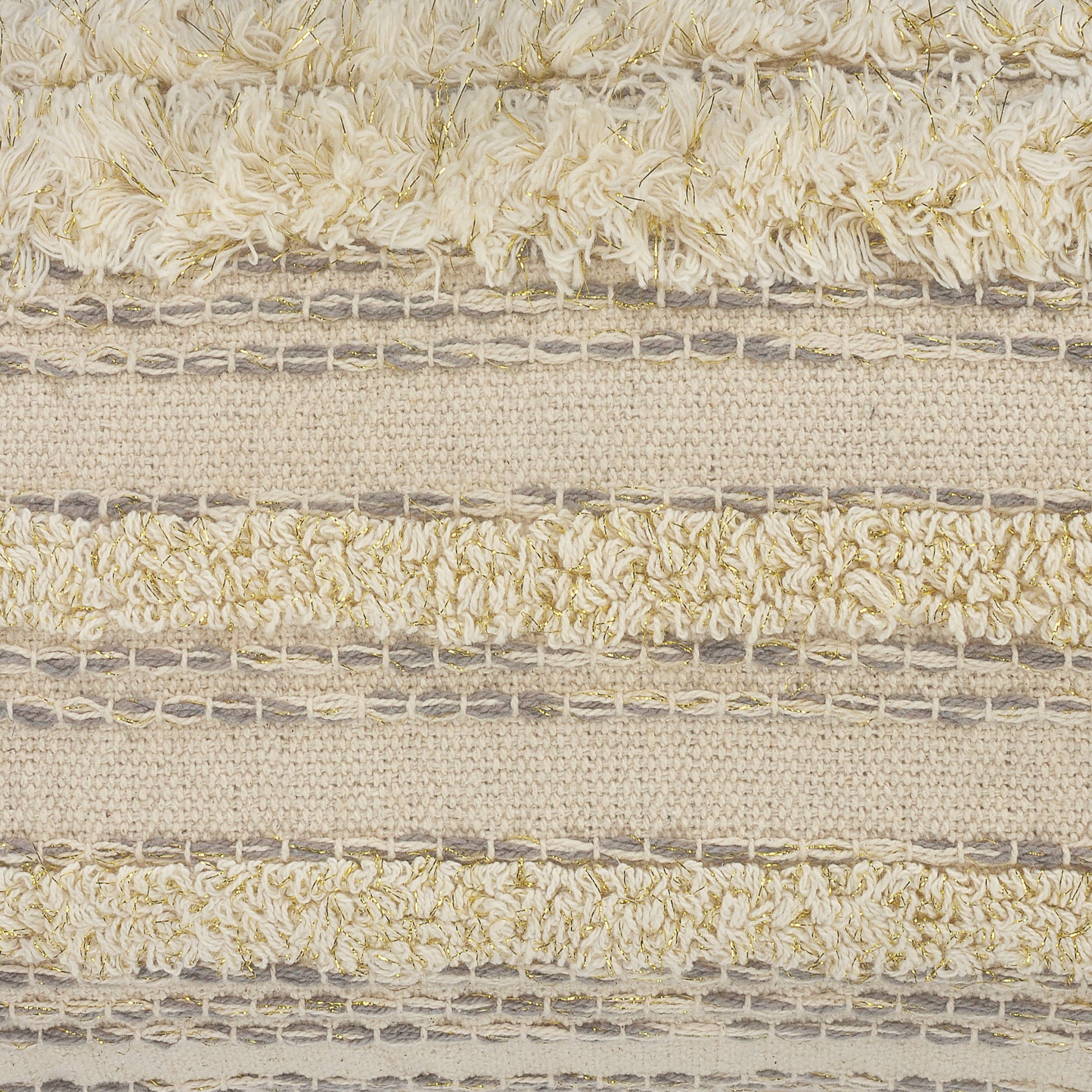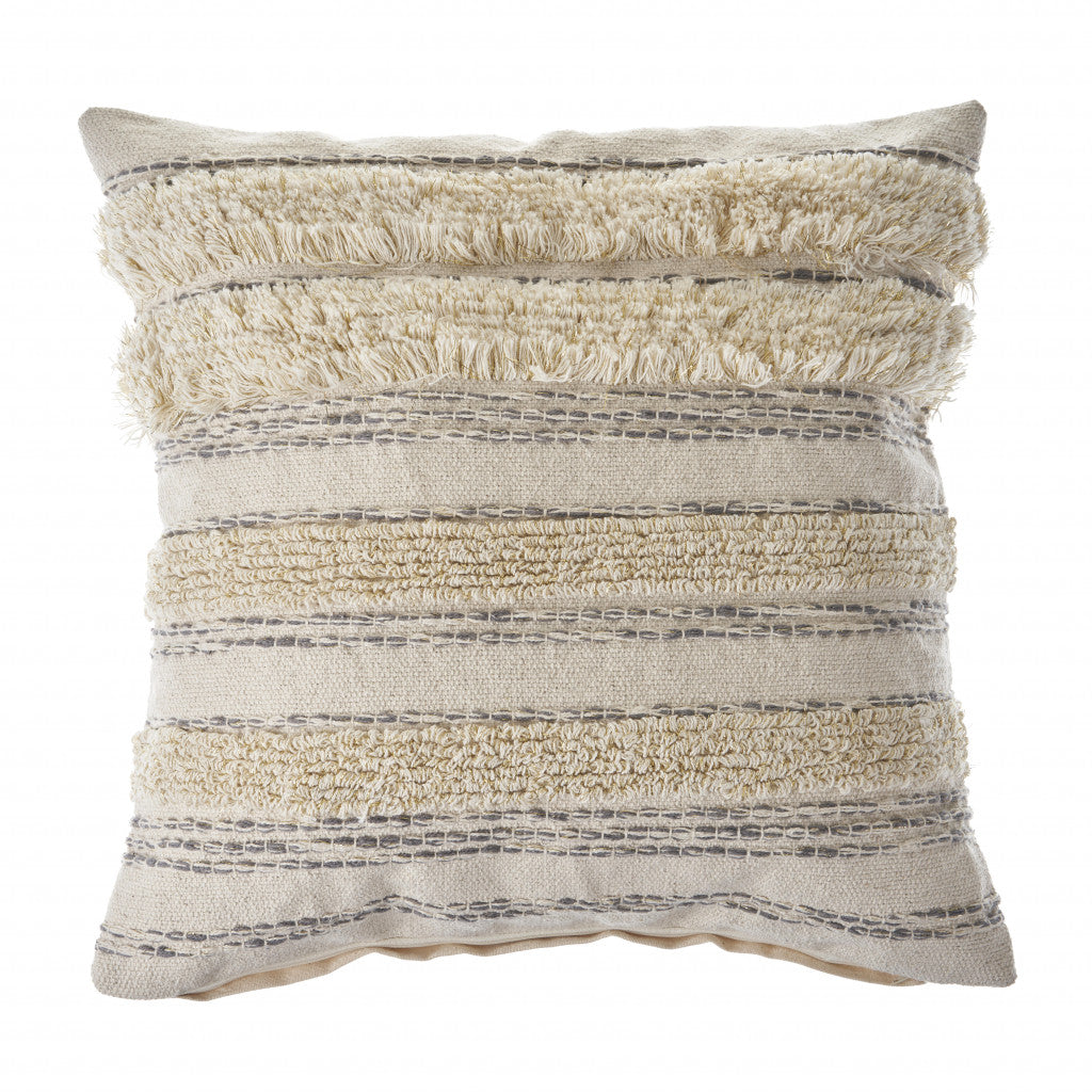 20" X 20" Cream Gray And Gold 100% Cotton Striped Zippered Pillow