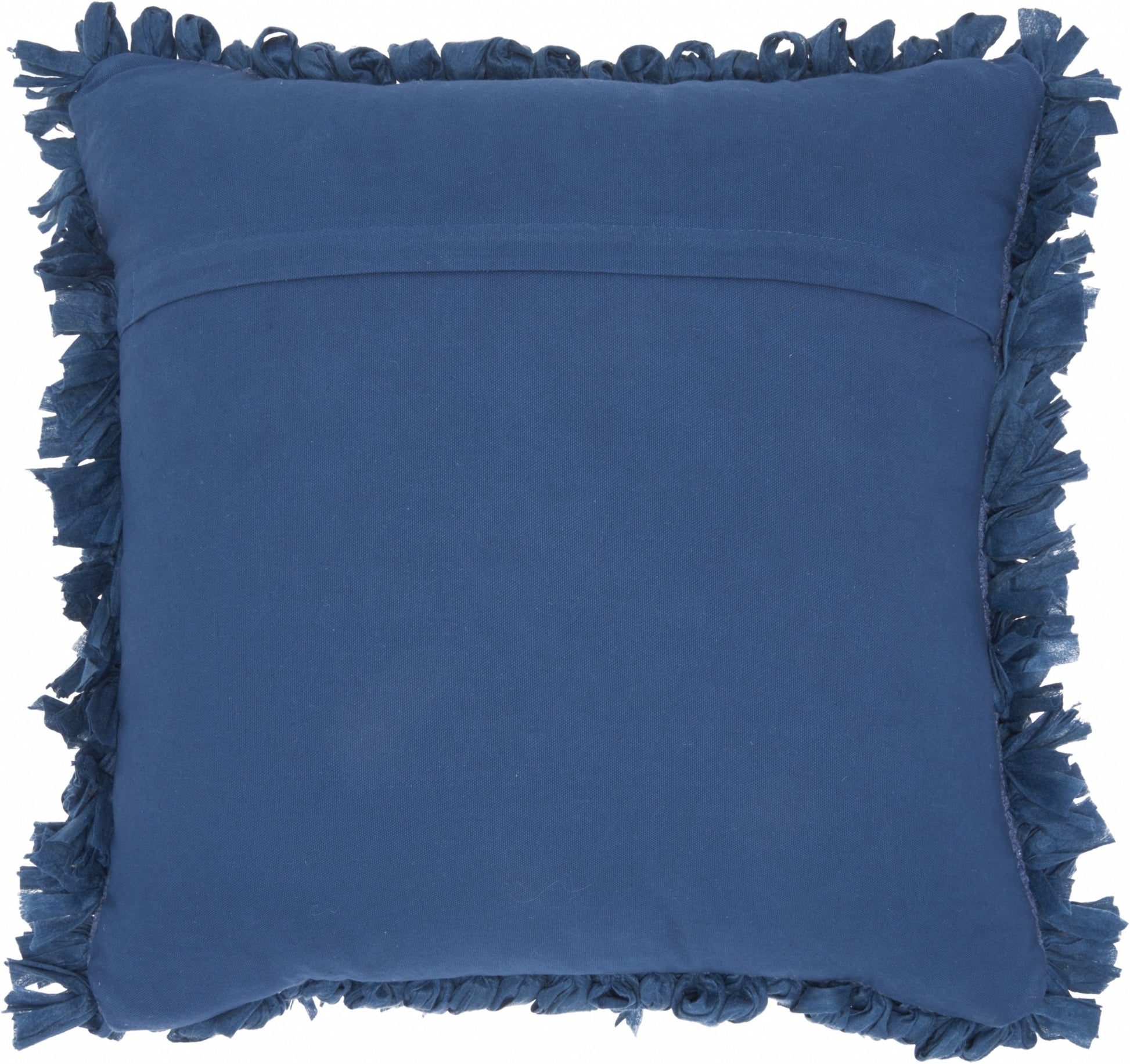 20" X 20" Dark Blue Cotton Blend Pillow With Shag