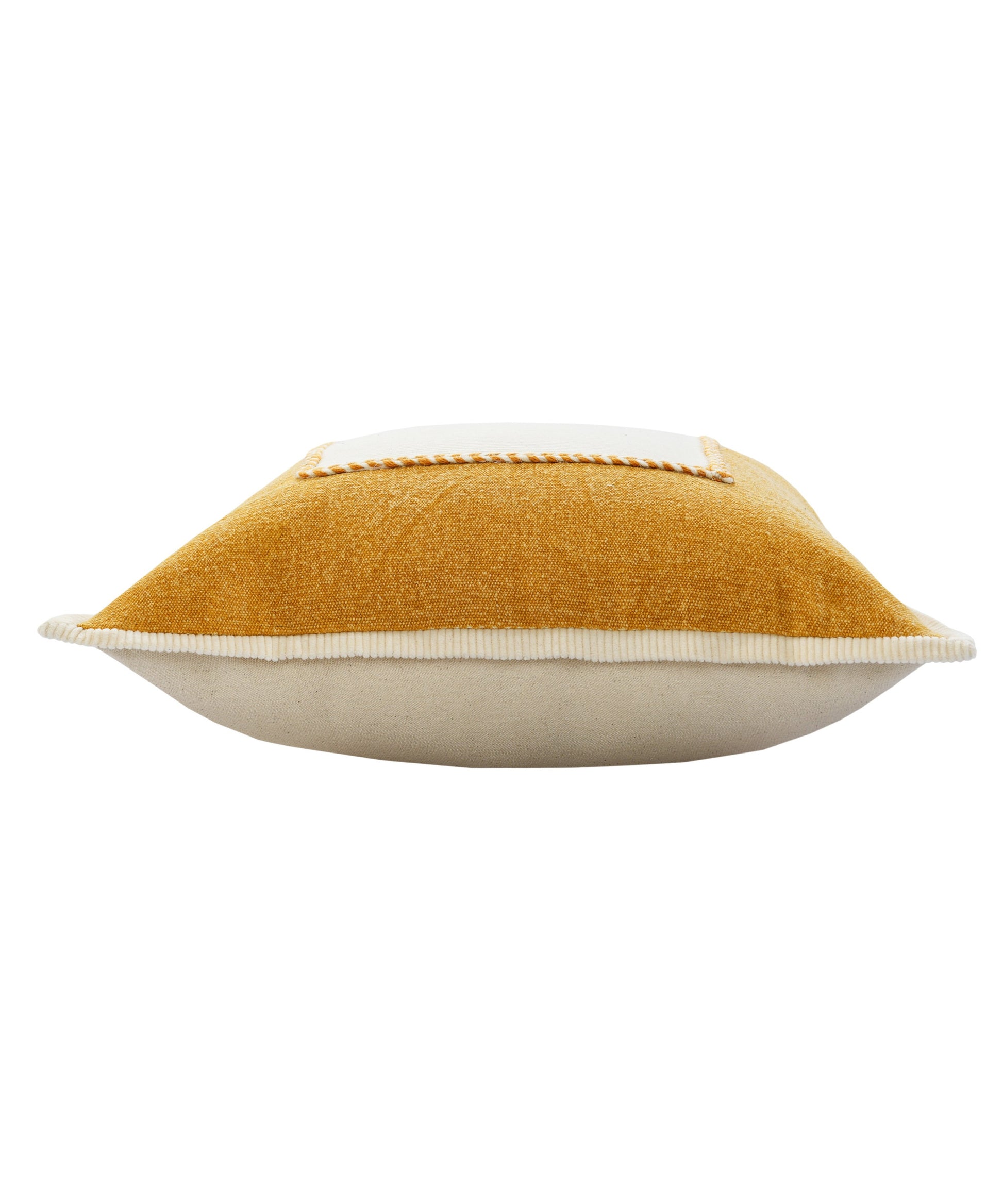 Bring a bit of fashion and zip to your space with this eye-catching and comfy 20" x 20" golden glow and cream 100% cotton zippered pillow. Soft and textural golden glow and cream 100% cotton has been used to make this pillow look and feel like a real treasure. Great to use on its own or mix with other decorations for the perfect look. Decorative pillows are a great way to change up the look and feel of your space easily and quickly. 4" H x 20" W x 20" D