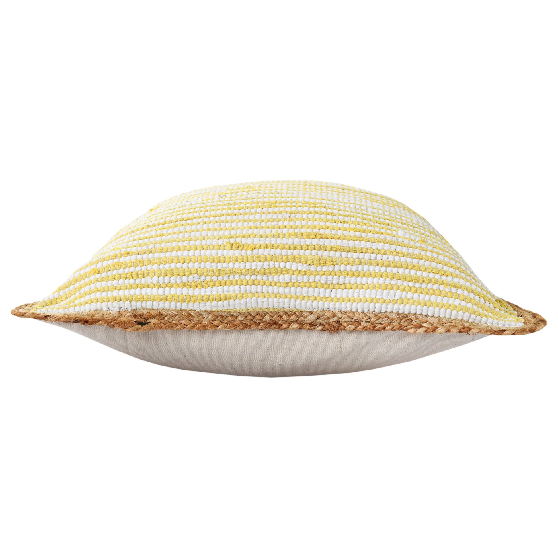 The 20" x 20" golden yellow, white and tan 100% cotton striped zippered pillow is the perfect decorative accessory for your home. Soft and textural golden yellow, white and tan 100% cotton has been used to make this pillow look and feel like a real treasure. Great to use on its own or mix with other decorations for the perfect look. Decorative pillows are a great way to change up the look and feel of your space easily and quickly. 4" H x 20" W x 20" D