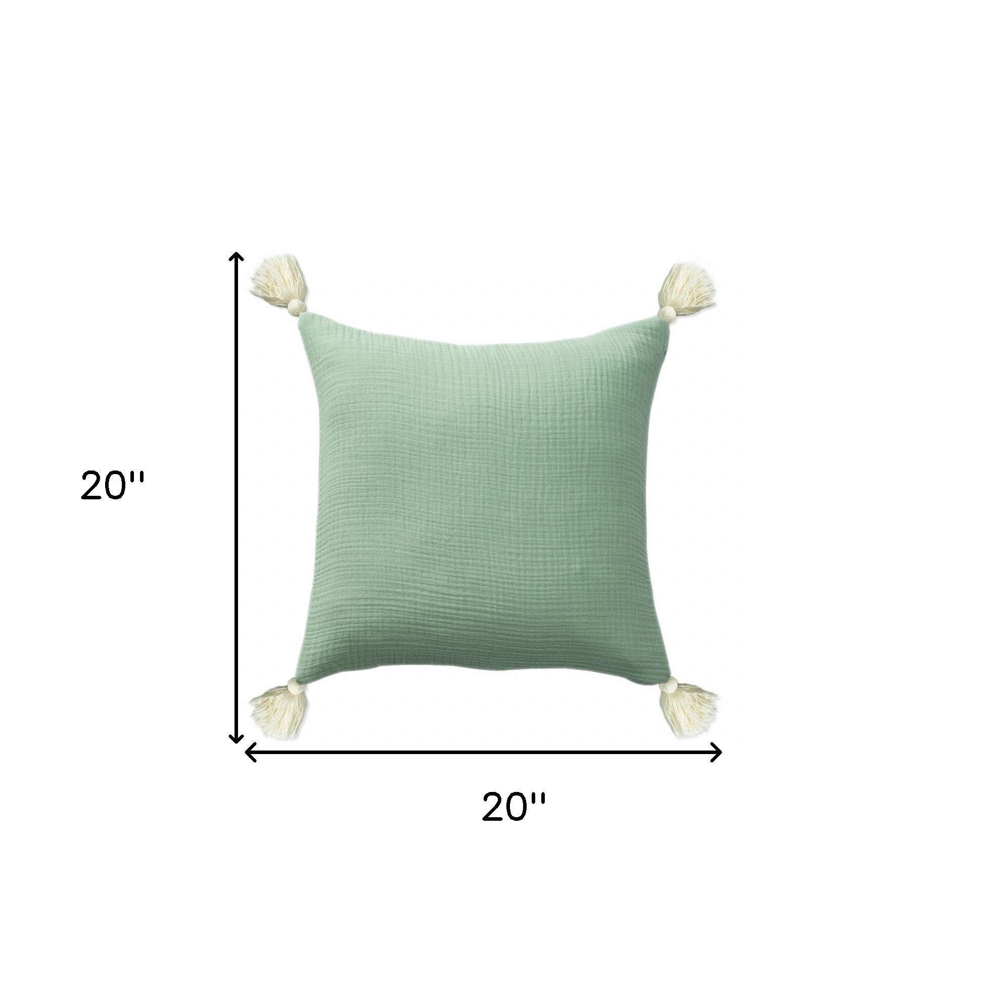20" X 20" Green And Ivory 100% Cotton Zippered Pillow