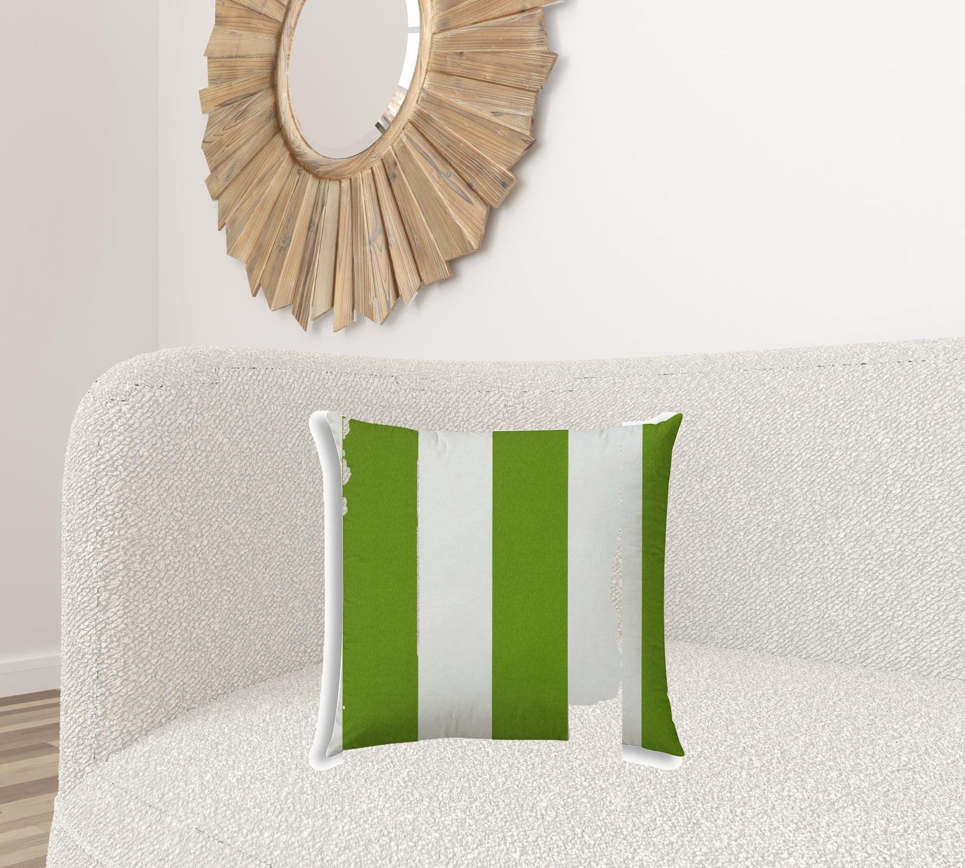 20" X 20" Green And Ivory Zippered Polyester Striped Throw Pillow Cover