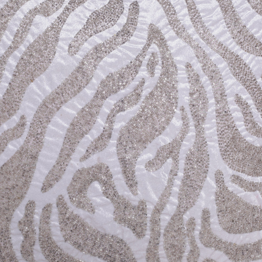 20" X 20" Ivory Safari Animals Abstract Polyester Zippered Pillow With Beads