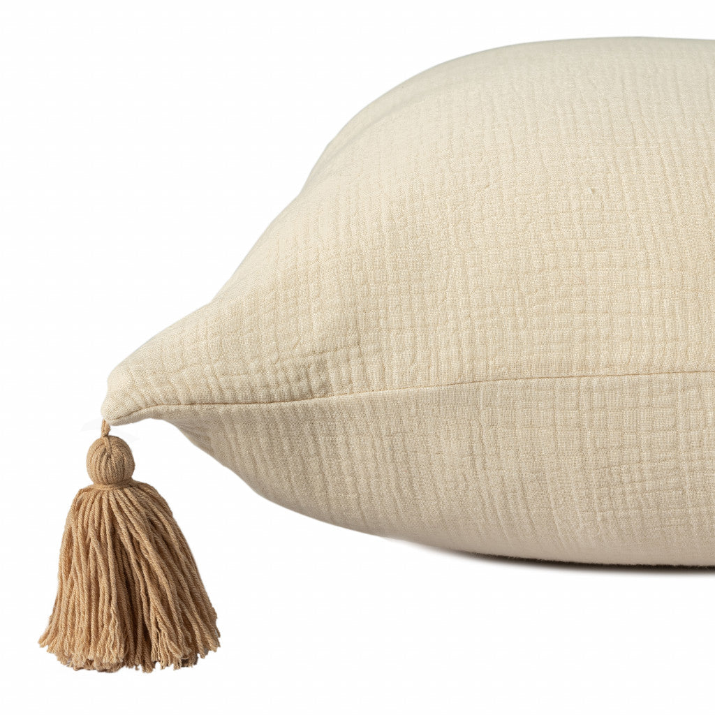 20" X 20" Light Beige And Dark Beige 100% Cotton Zippered Pillow