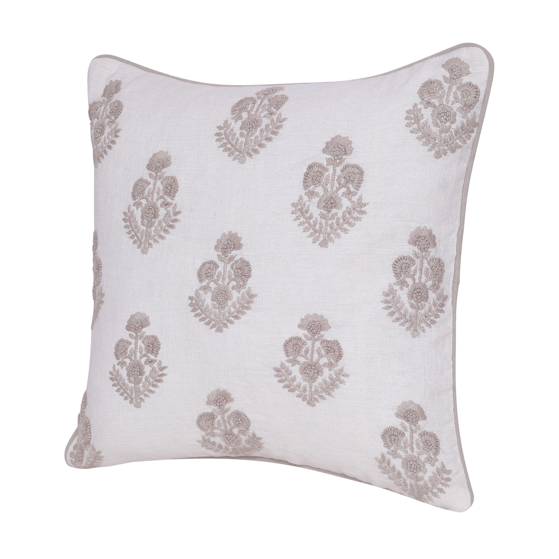 Unique and decorative, this comfortable 20-inch x 20-inch natural and ivory floral linen zippered pillow with embroidery will leave a lasting impression. This natural and ivory colored decorative pillow is made from high grade 100% linen that is durable and long lasting. Super soft and built to hold its shape, this polyfill pillow is a great option. Decorative throw pillows not only add color and dimension to your space but can be comfy and supportive when you are lounging and cuddling as well. A great decorative accessory for your favorite chair, to accent your sofa, or to use as part of your bed ensemble. 20-inch H x 20-inch W x 4-inch D