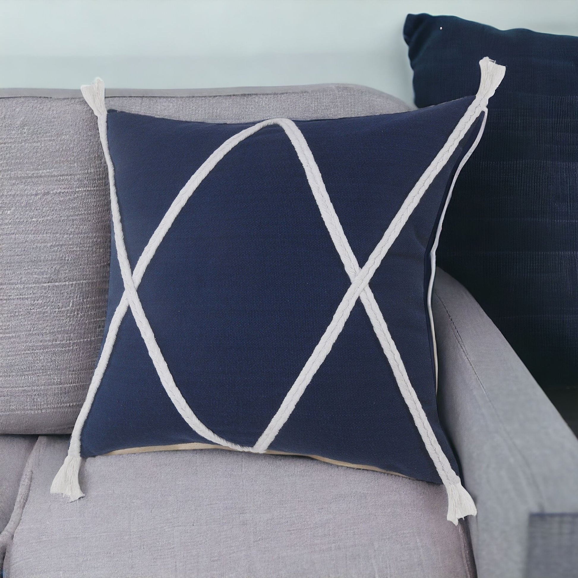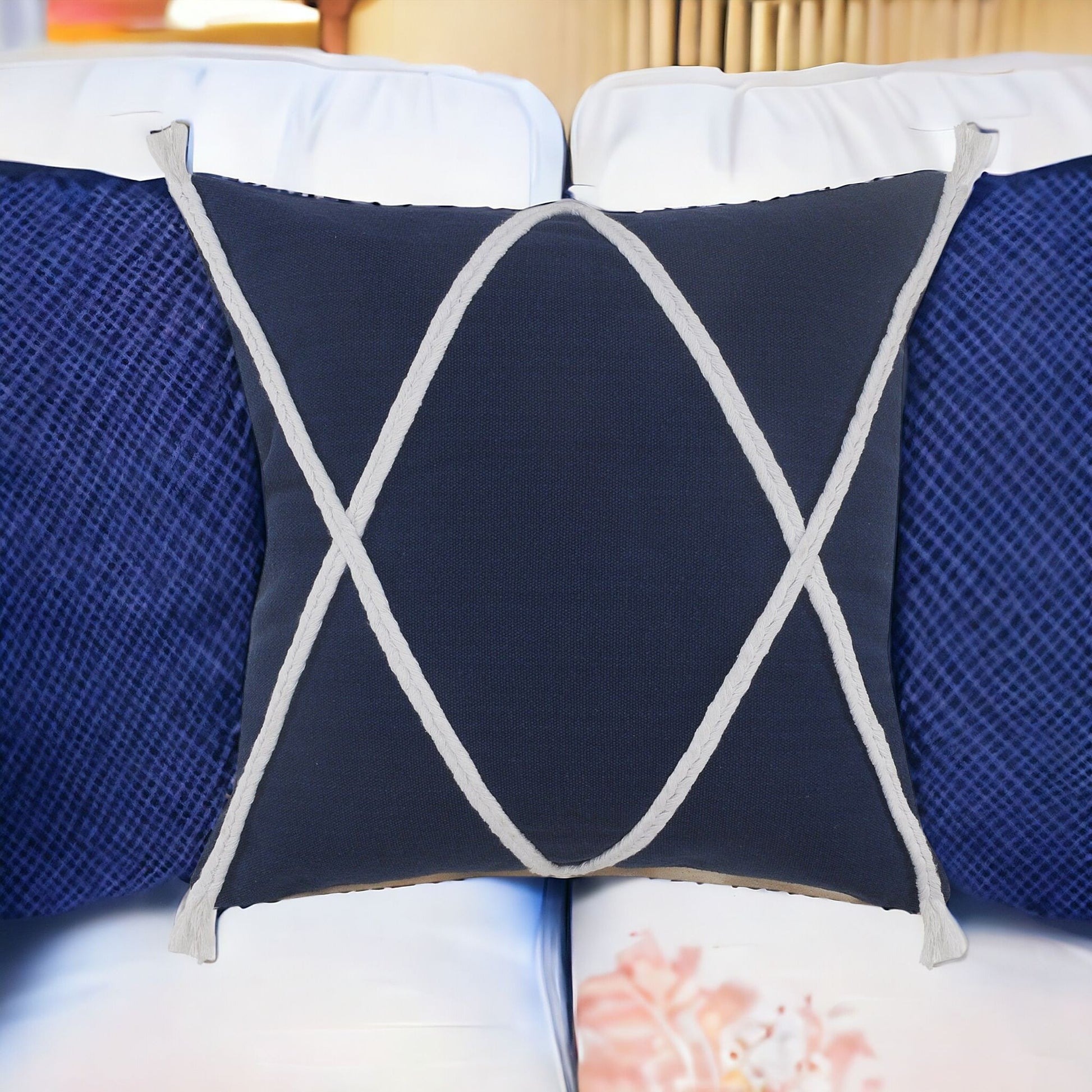 20" X 20" Navy And White 100% Cotton Coastal Zippered Pillow