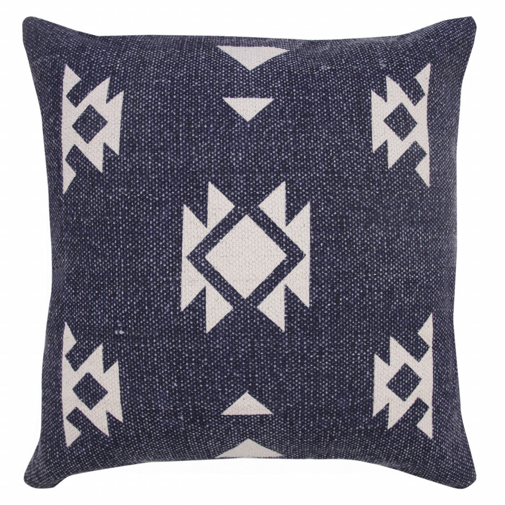 20" X 20" Navy And White 100% Cotton Geometric Zippered Pillow