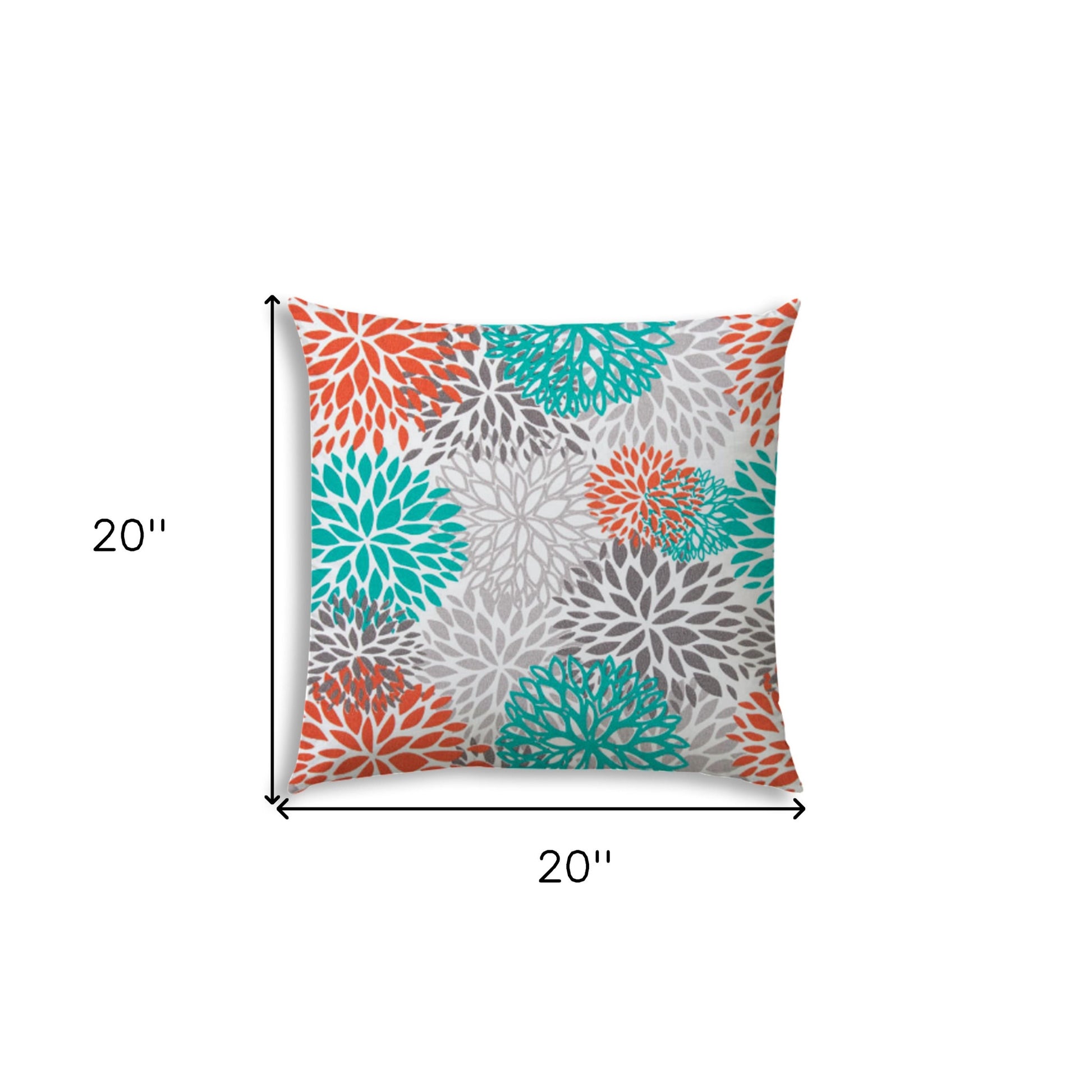 20" X 20" Orange And White Blown Seam Floral Throw Indoor Outdoor Pillow