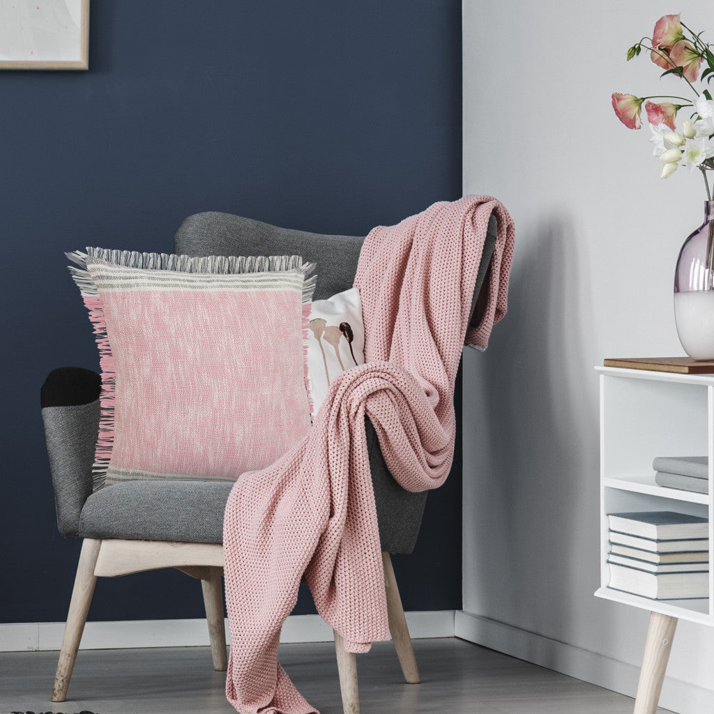 Bring a bit of fashion and zip to your space with this eye-catching and comfy 20" x 20" pink gray and white 100% cotton striped zippered pillow. Soft and textural pink gray and white 100% cotton has been used to make this pillow look and feel like a real treasure. Great to use on its own or mix with other decorations for the perfect look. A great decorative accessory for your favorite chair, to accent your sofa, or to use as part of your bed ensemble. 4" H x 20" W x 20" D