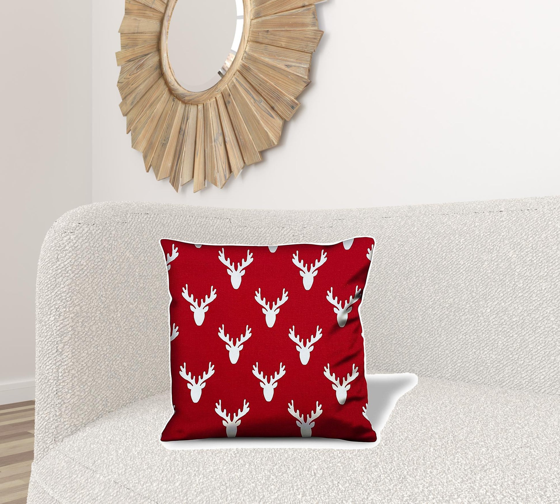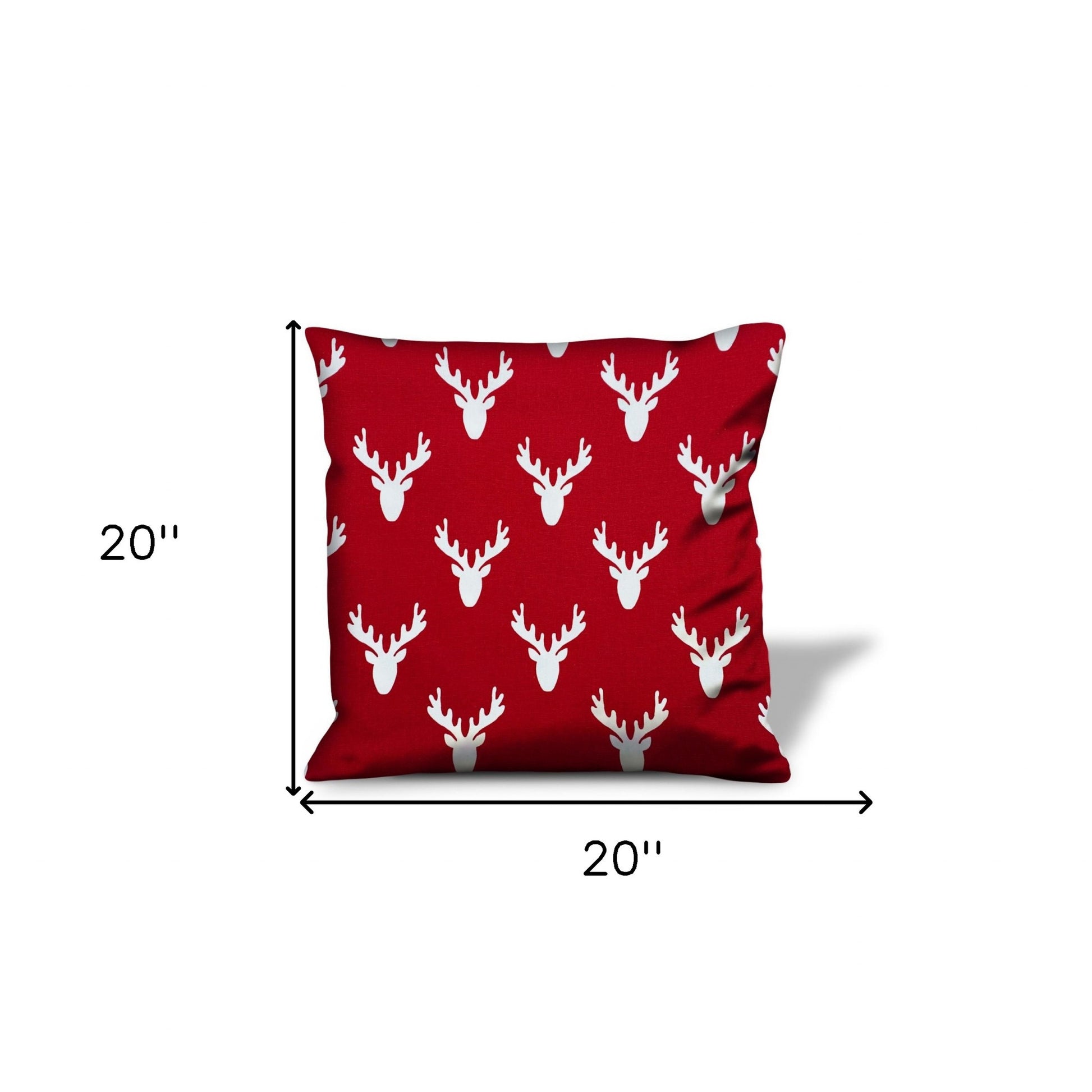 20" X 20" Red Gray And White Reindeer Zippered 100% Cotton Animal Print Throw Pillow Cover