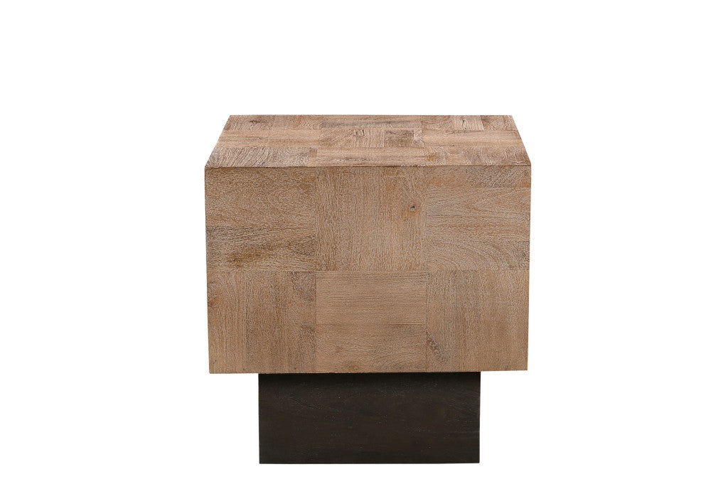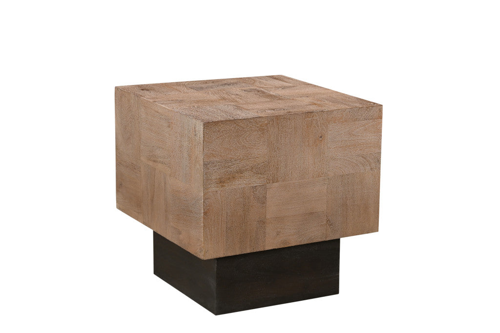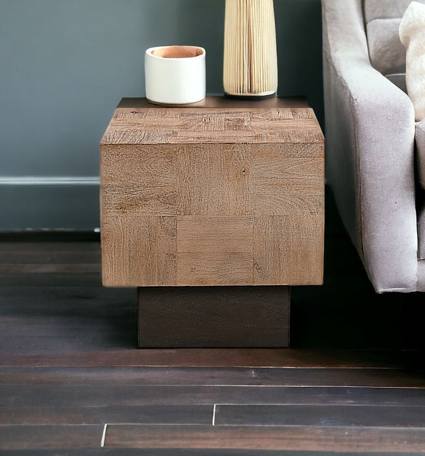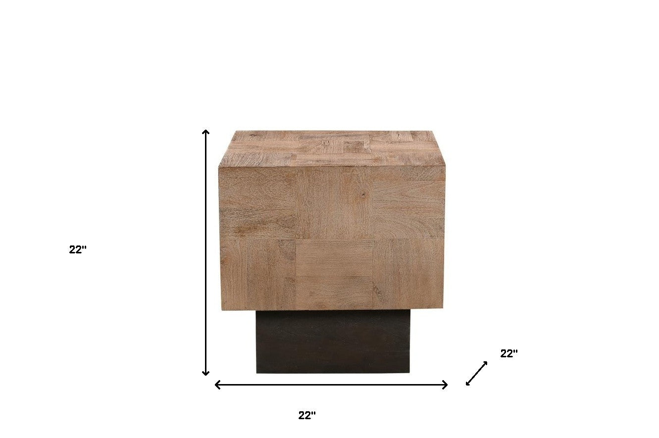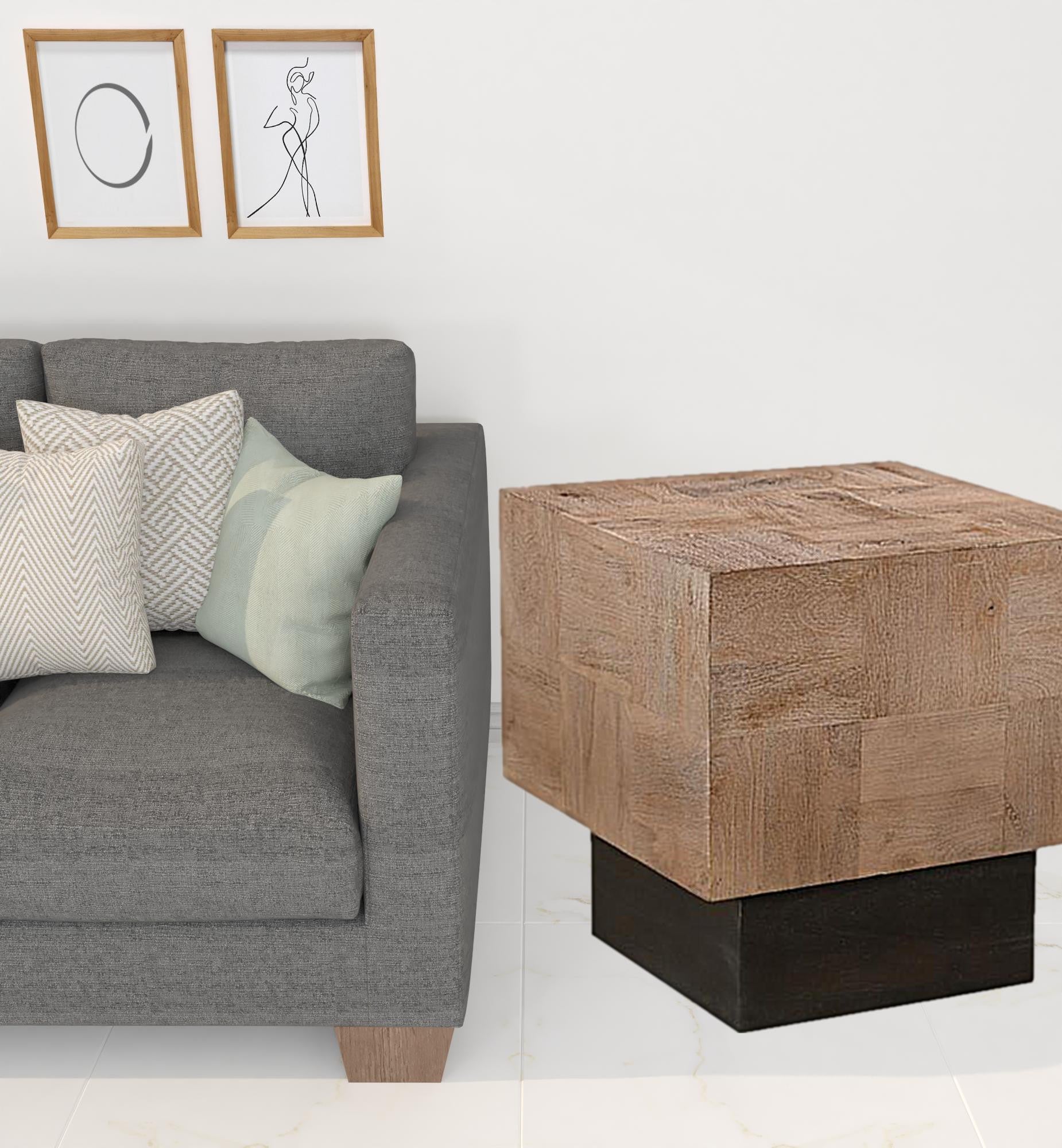Show off your exquisite taste with this 22" black and brown solid wood end table with. Offering a nice color combination, the top of this solid wood table is brown, while the base compliments it nicely in black.  A great accent on either side of the sofa or bed, this adorable end or side table is just what you need. This versatile table is a great accent for most any room. 22" H x 22" W x 22" D