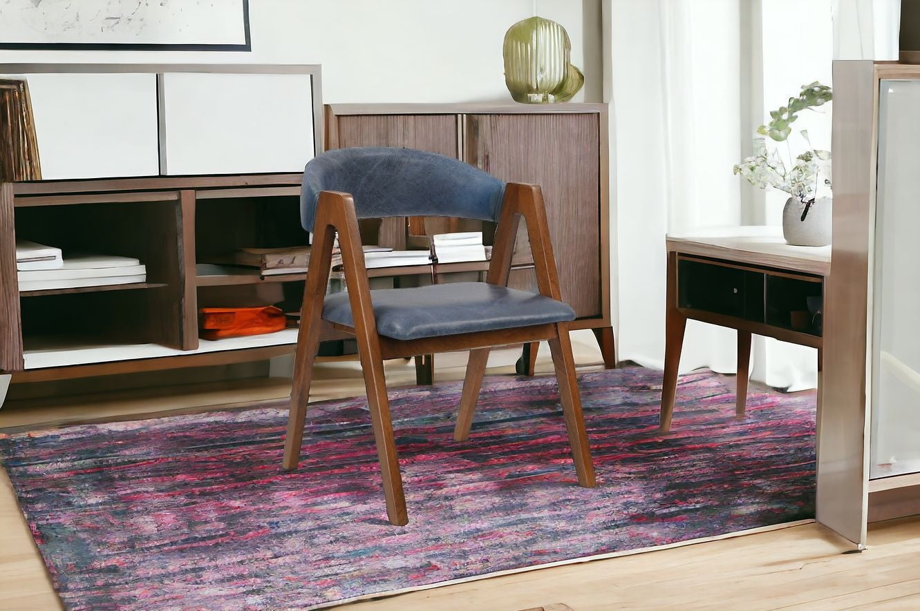 22" Blue And Brown Top Grain Leather Arm Chair