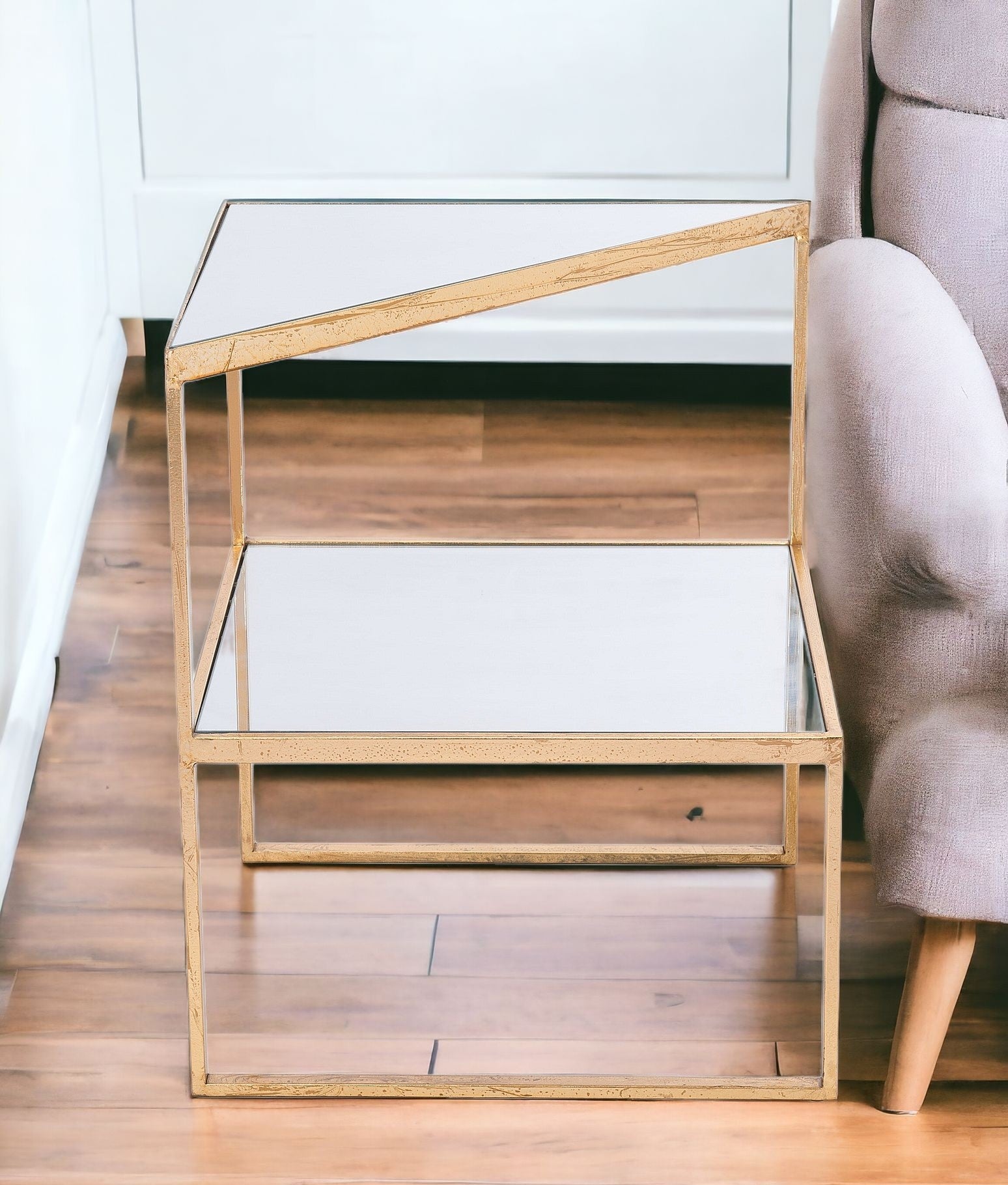Distinctive in style the 22" gold and clear glass rectangular end table radiates a versatile charm. A gold steel frame is finished off with a clear glass top that is the epitome of quality construction and design. Side tables are a great way to flank your sofa, use as an accent next to your favorite chair, or can even be used bedside. You can match it with other pieces to get the ideal look for your place. 22.2" H x 18.3" W x 18.3" D