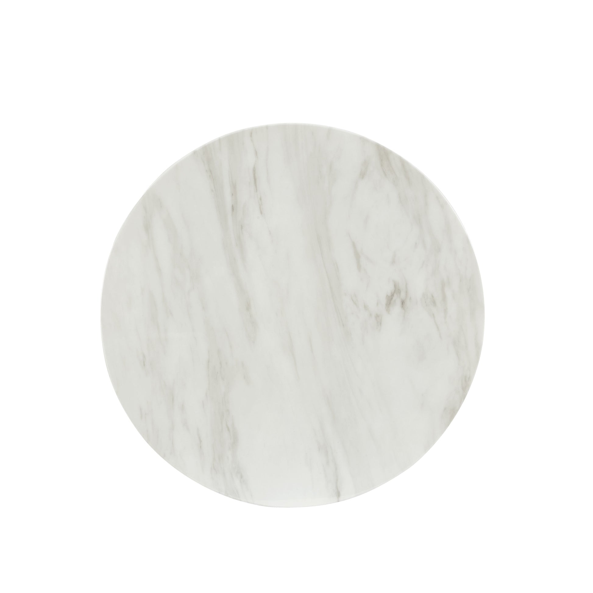 Show off your exquisite taste with this 22-inch gold and white genuine marble round end table. The gold coloration of the high quality stainless steel base marries nicely with the white genuine marble top. An ideal location for placing your snacks and drinks, and a place to keep your lamp, frames, or other accessories. This versatile table is a great accent for most any room. 21.9-inch H x 23.7-inch W x 23.7-inch D