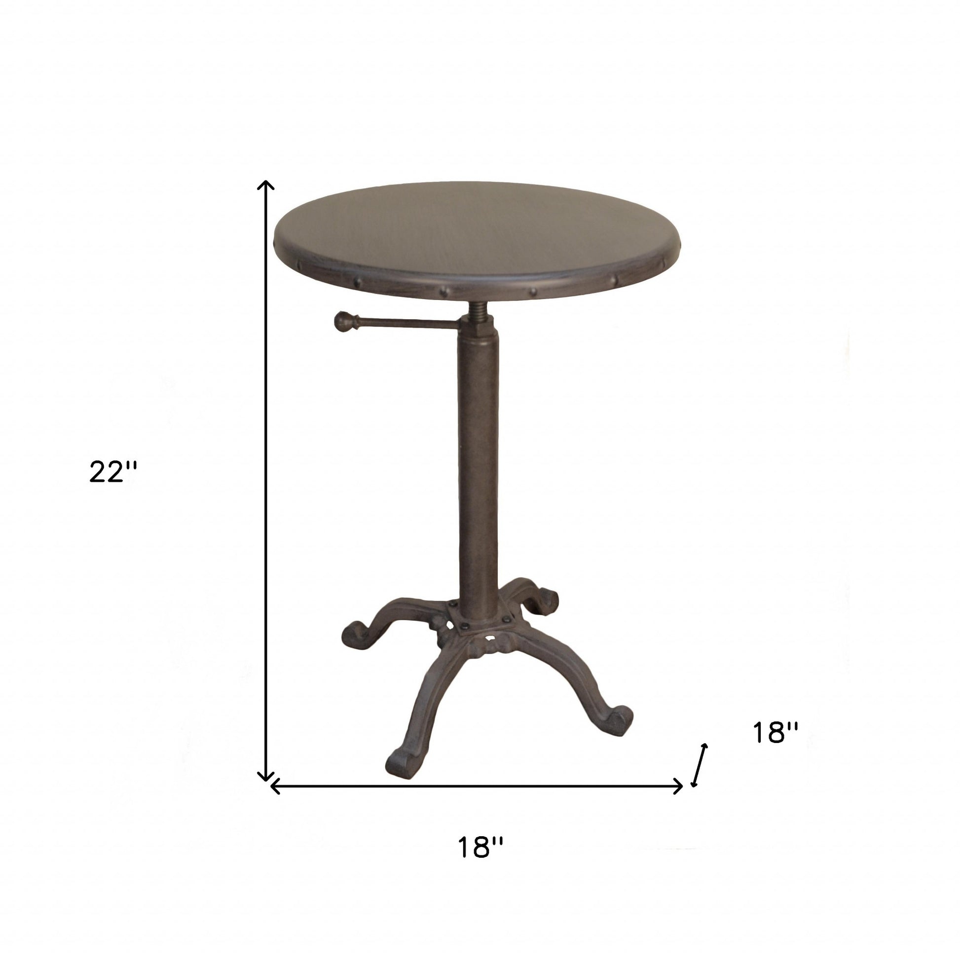 Distinctive in style the 22" industrial and inustrial iron round end table radiates a versatile charm. Offering a nice color combination, the top of this iron table is inustrial, while the base compliments it nicely in industrial. A great accent on either side of the sofa or bed, this adorable end or side table is just what you need. You can also use it as an entryway table to hold your keys. 22" H x 18" W x 18" D