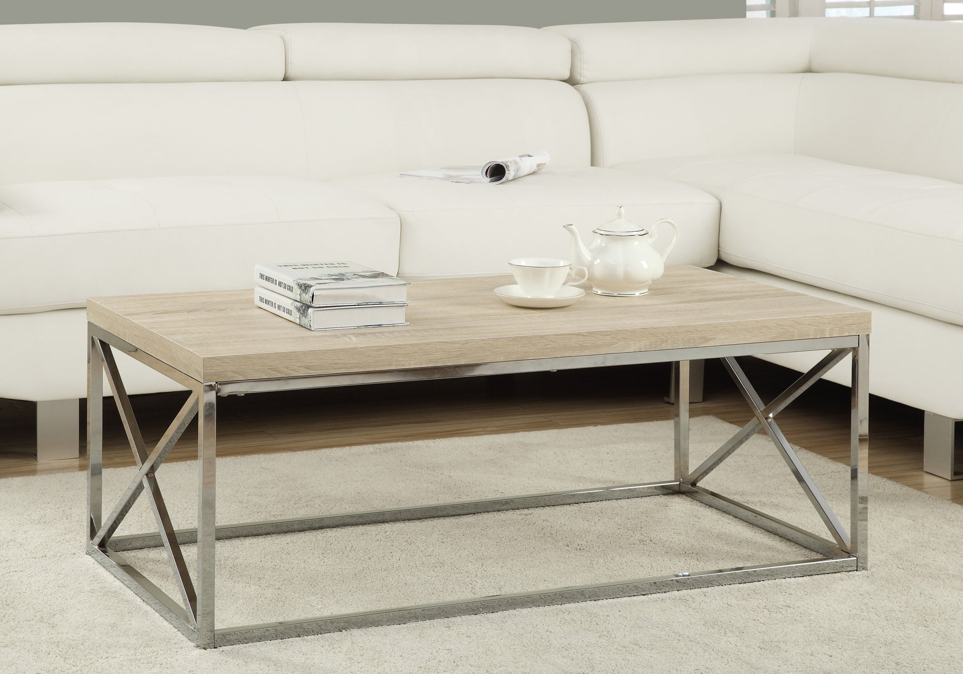 Make your living room or family room really stand out with this 22-inch natural and silver iron coffee table. Quality construction from the silver iron base combines with natural manufactured wood of the top to give this table a fresh and updated look. This classic rectangular table will be a great accent in any room if you're looking for something that can fit into a living area, bedroom, or office, this coffee table is for you. This coffee table is the sturdy, reliable and stylish answer to your living room needs. 17-inch H x 22-inch W x 44-inch D