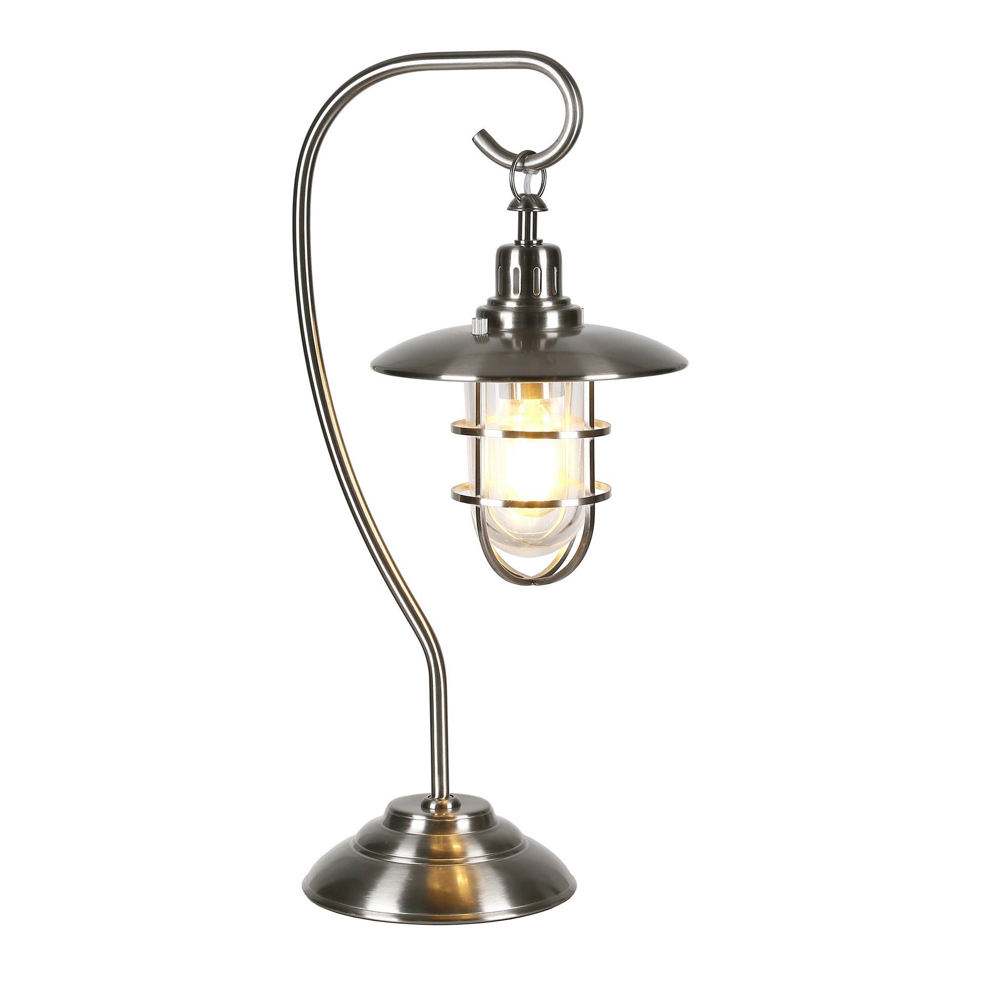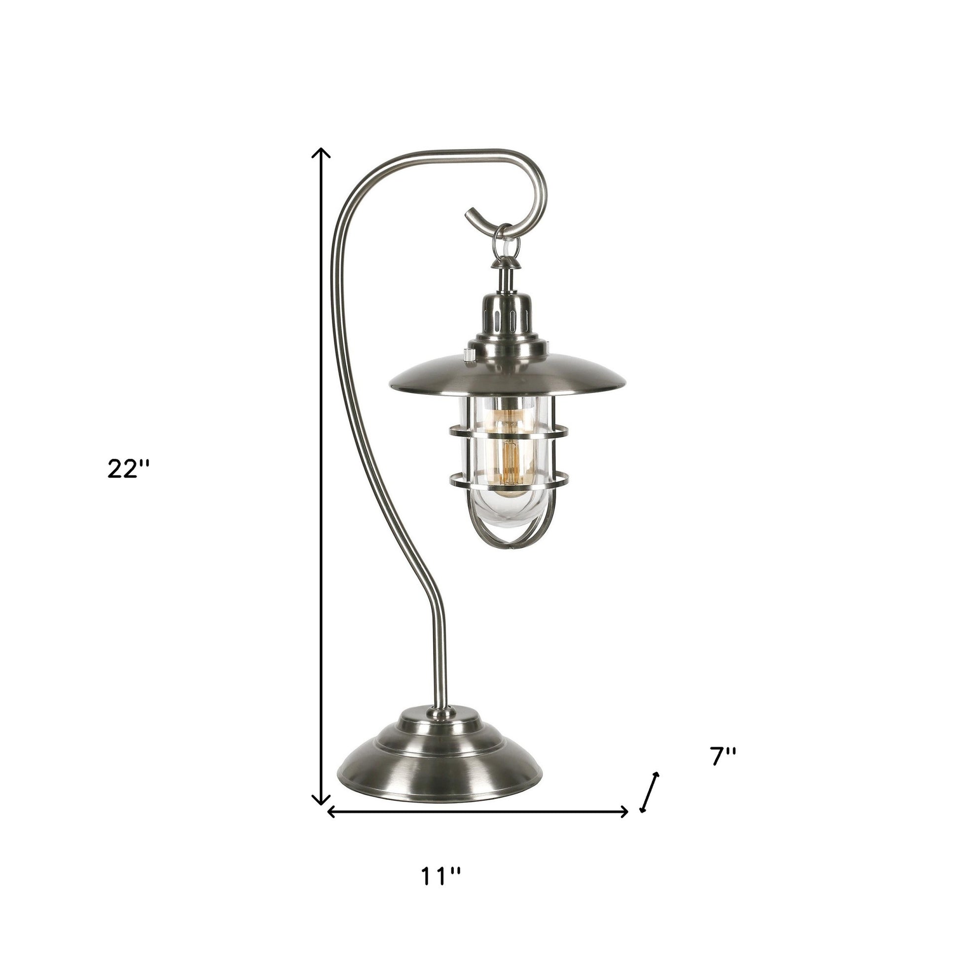 This 22-inch nickel metal arched table lamp with nickel cage shade is a great way to add some brightness to any corner of your home. The lamp is made of sturdy metal and features a nickel color. The nickel cage metal shade is a great compliment to this lamp. A sophisticated take on a classic, this arched table lamp is a great option for a unique look. The light that this lamp throws is soft and warm to elevate the look of most any space in your home. It is perfect for virtually any decor. 22-inch H x 11-inch W x 7-inch D