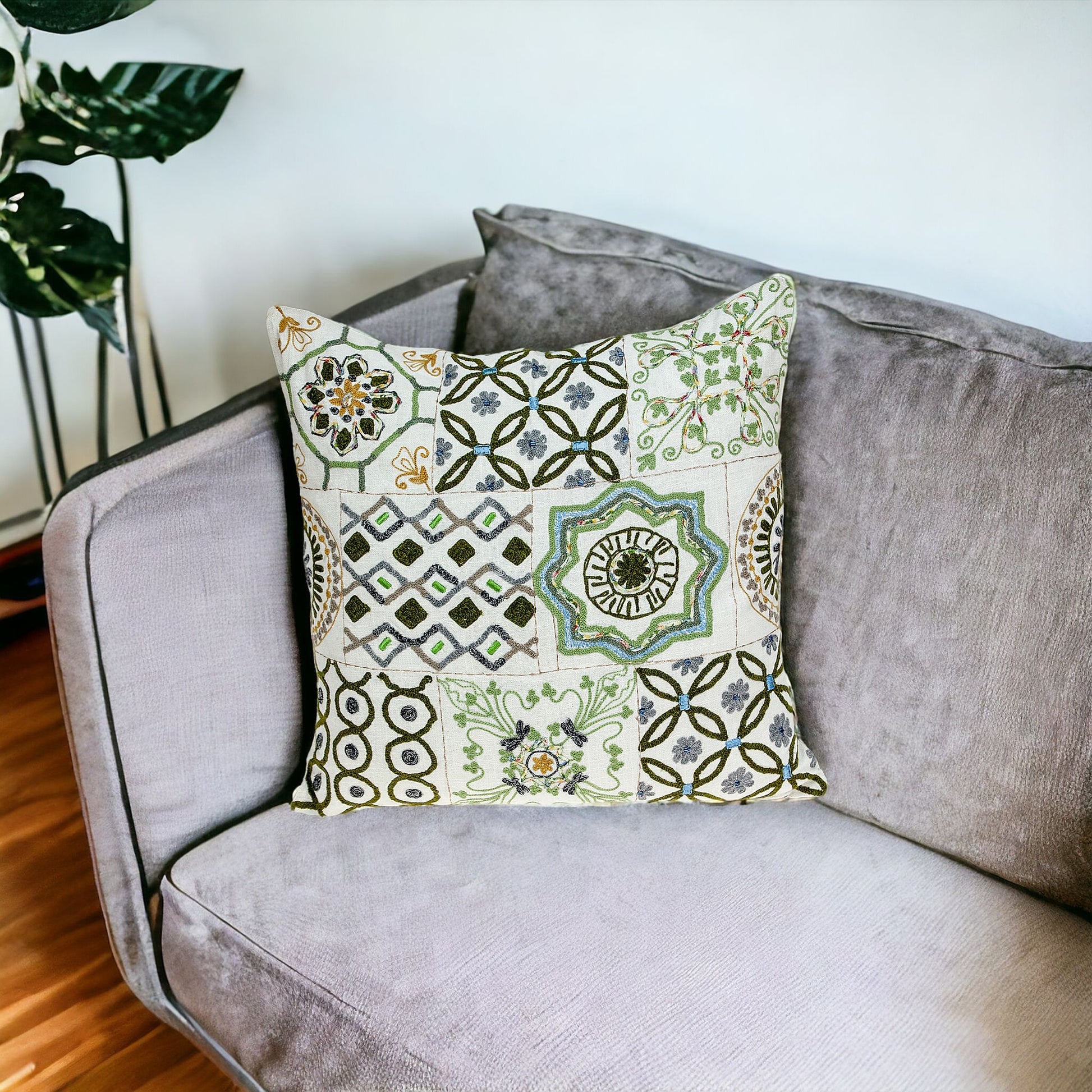 22 X 22 Off White Zippered 100% Cotton Throw Pillow