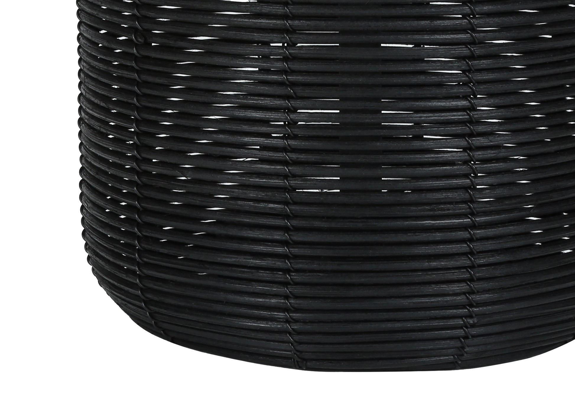 23" Black Rattan Round Table Lamp With Ivory Drum Shade