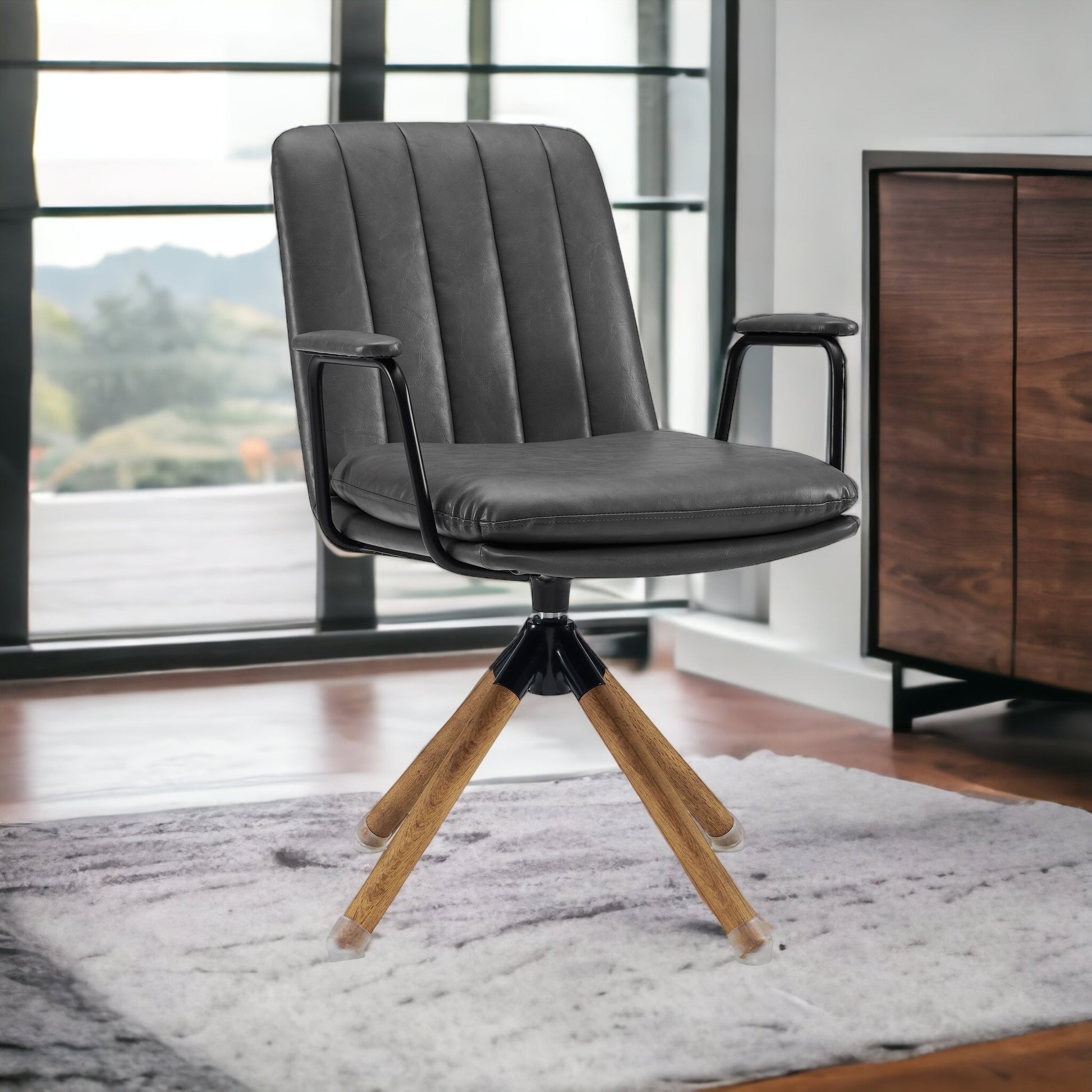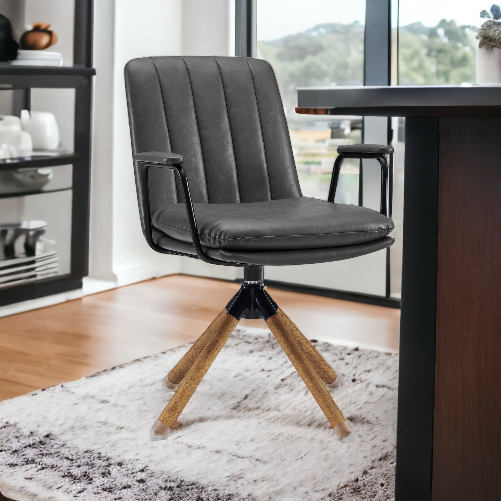 23" Charcoal and Natural Faux Leather Swivel Arm Chair