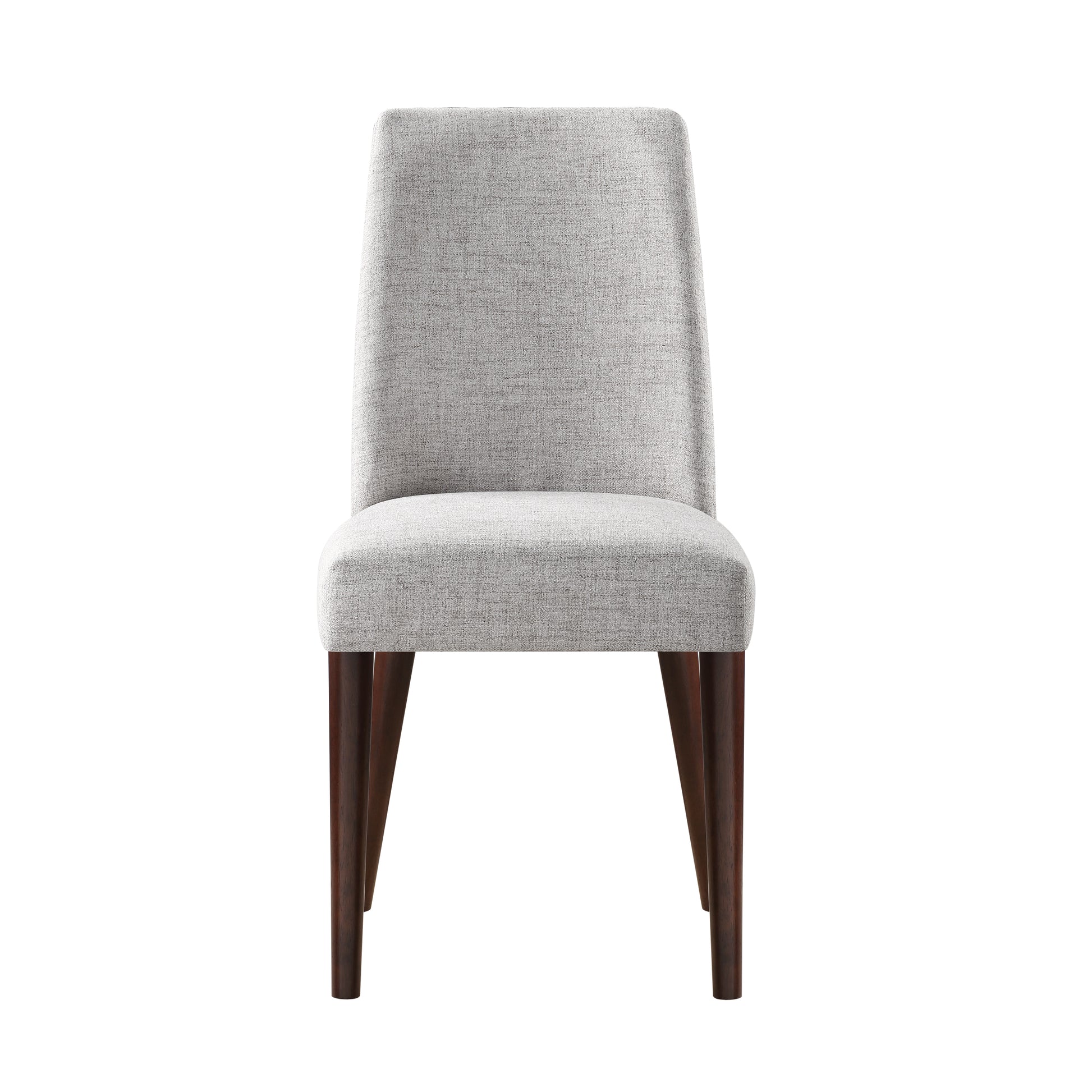 Fill your living room, bedroom, or office with fashionable seating options with this 23-inch gray solid wood and fabric upholstered parsons chair. This multi-functional fabric upholstered armless chair comes in a chic gray and dark brown color combo to give your space just the right look. The sturdy frame and legs are crafted from high quality solid wood, featuring a fixed back that is accented with soft and comfortable cushioning. 37-inch H x 23.25-inch W x 18.5-inch D