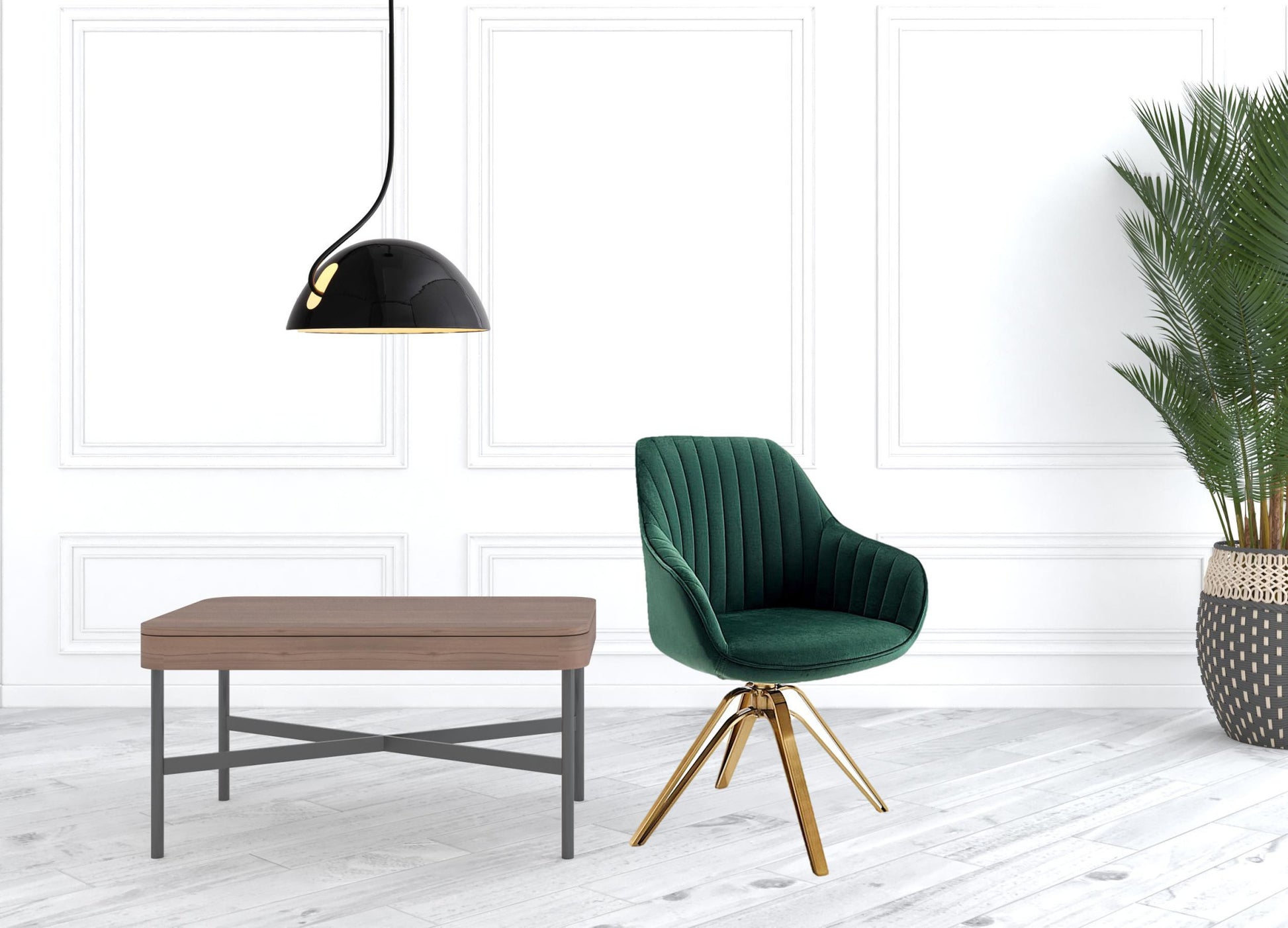 A mix of form and function, this 23" green velvet and gold swivel arm chair will bring a good looking and usable accent to your space. Built to last this arm chair is finished in solid green velvet to give your room a great update. This chair features a swivel function so that you can turn and angle easily to interact with your space. 33.27" H x 23" W x 23.9" D
