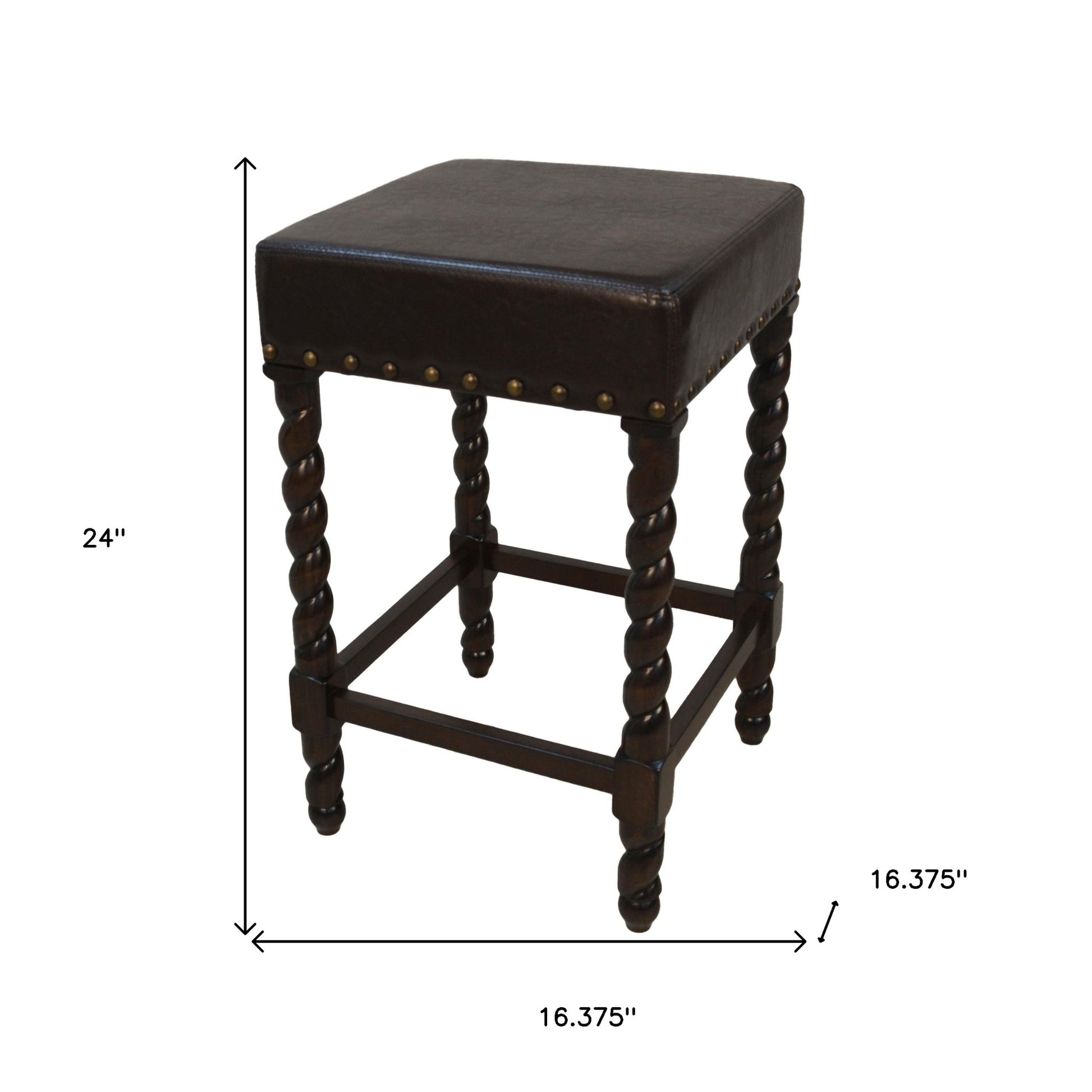 24" Black And Espresso Faux Leather And Solid Wood Backless Counter Height Bar Chair