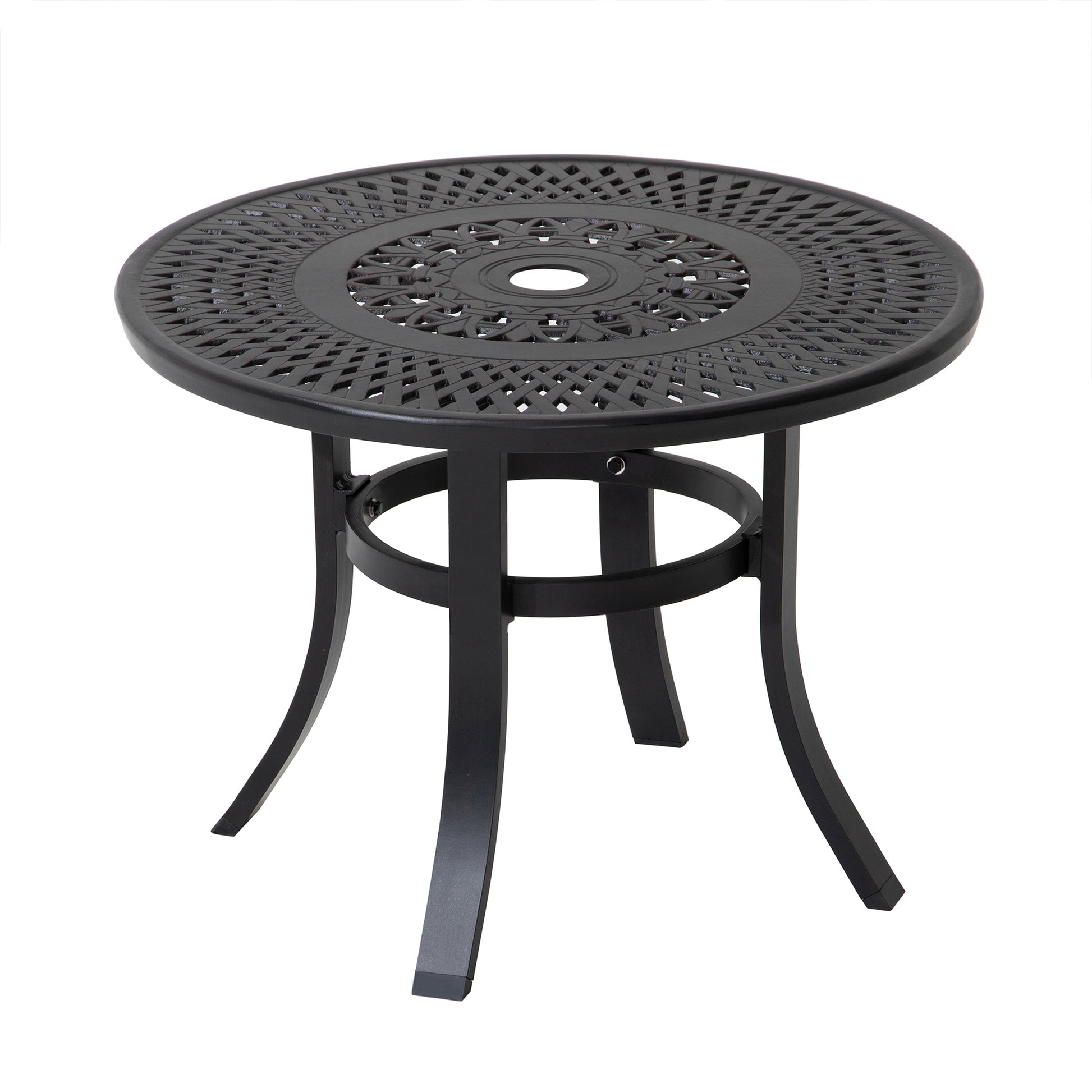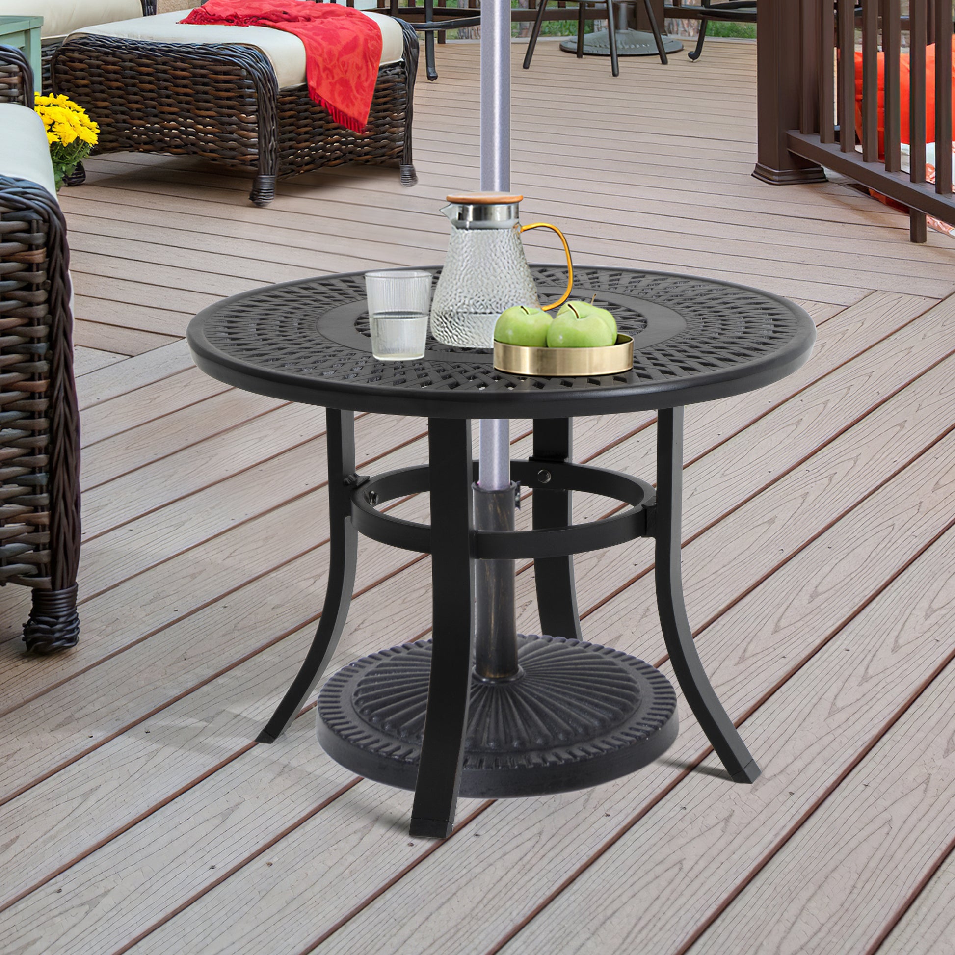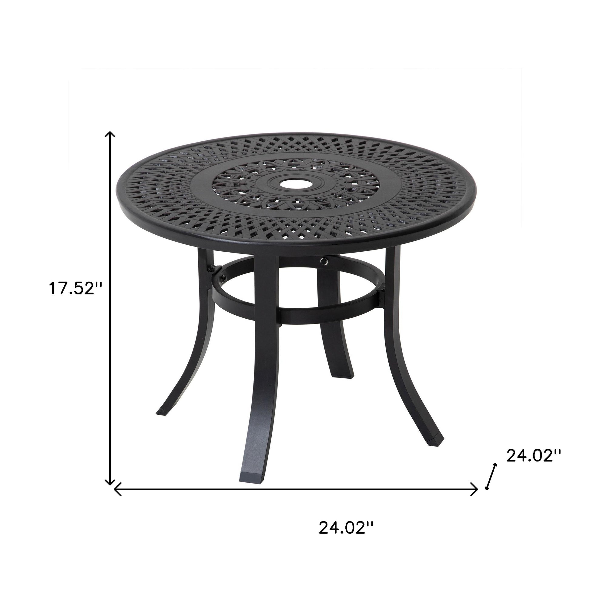 24" Black Rounded Metal Outdoor Bistro Table With Umbrella Hole