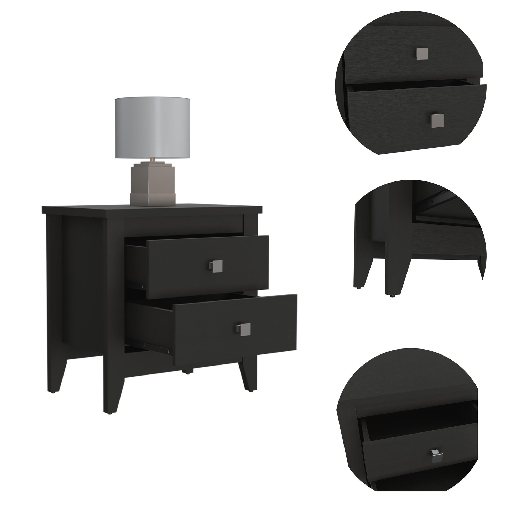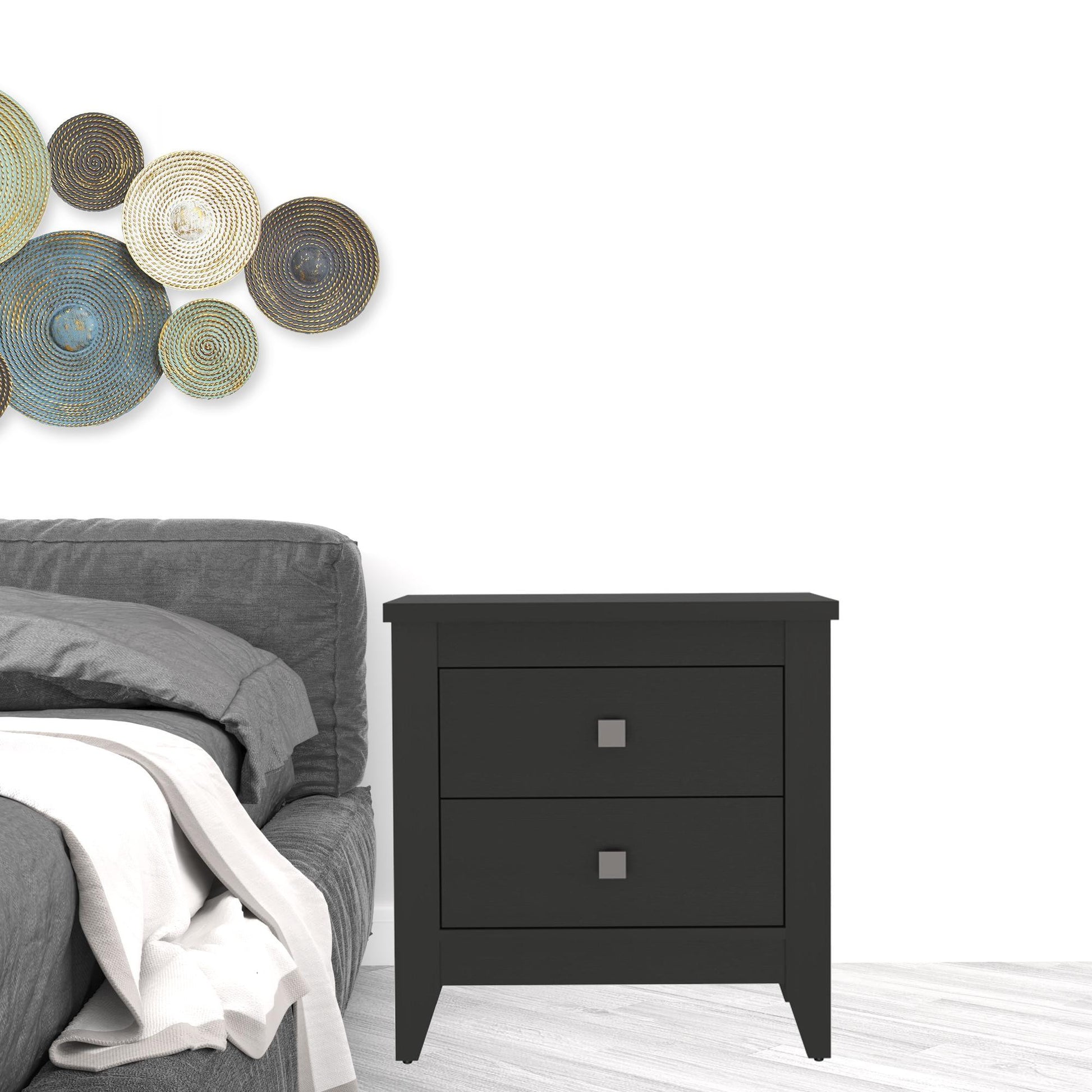 Our 24-inch black wengue two drawer nightstand will compliment your bed beautifully. Made of high quality manufactured wood that is built to last. The piece has 2 drawers to store your bedtime essentials close to you as you rest. The unsung hero of the bedroom, this nightstand is perfect for keeping a glass of water, lamp, alarm clock, jewelry, and more, close by and easily accessible. Nightstands are obviously great beside the bed but can be used just as easily to help battle clutter in your living room, hallway, office, or dining room. 24.25-inch H x 26.62-inch W x 15.74-inch D