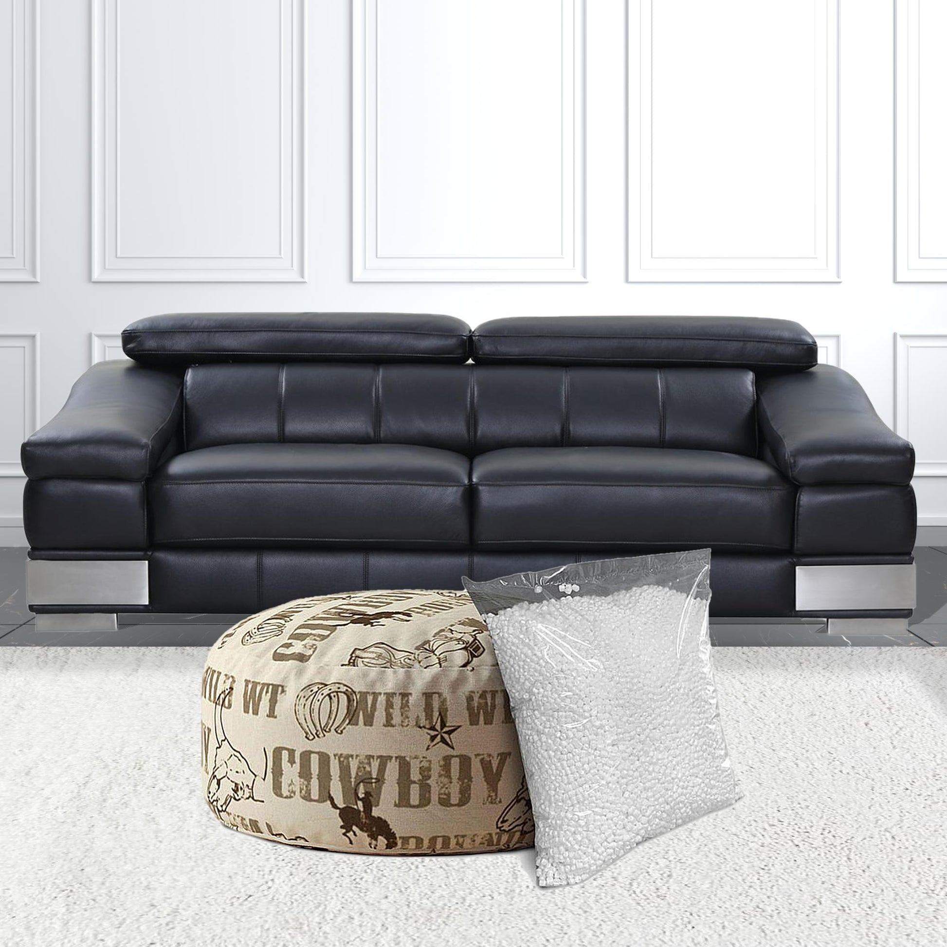 Get ready to relax with this 24" brown cotton round cowboy pouf cover. Expertly upholstered with padding and soft cotton in a cowboy pattern, this ottoman is as comfortable as it is good looking. Ottomans are multi-functional additions to your space that add fashion and practical value. 20" H x 24" W x 1" D