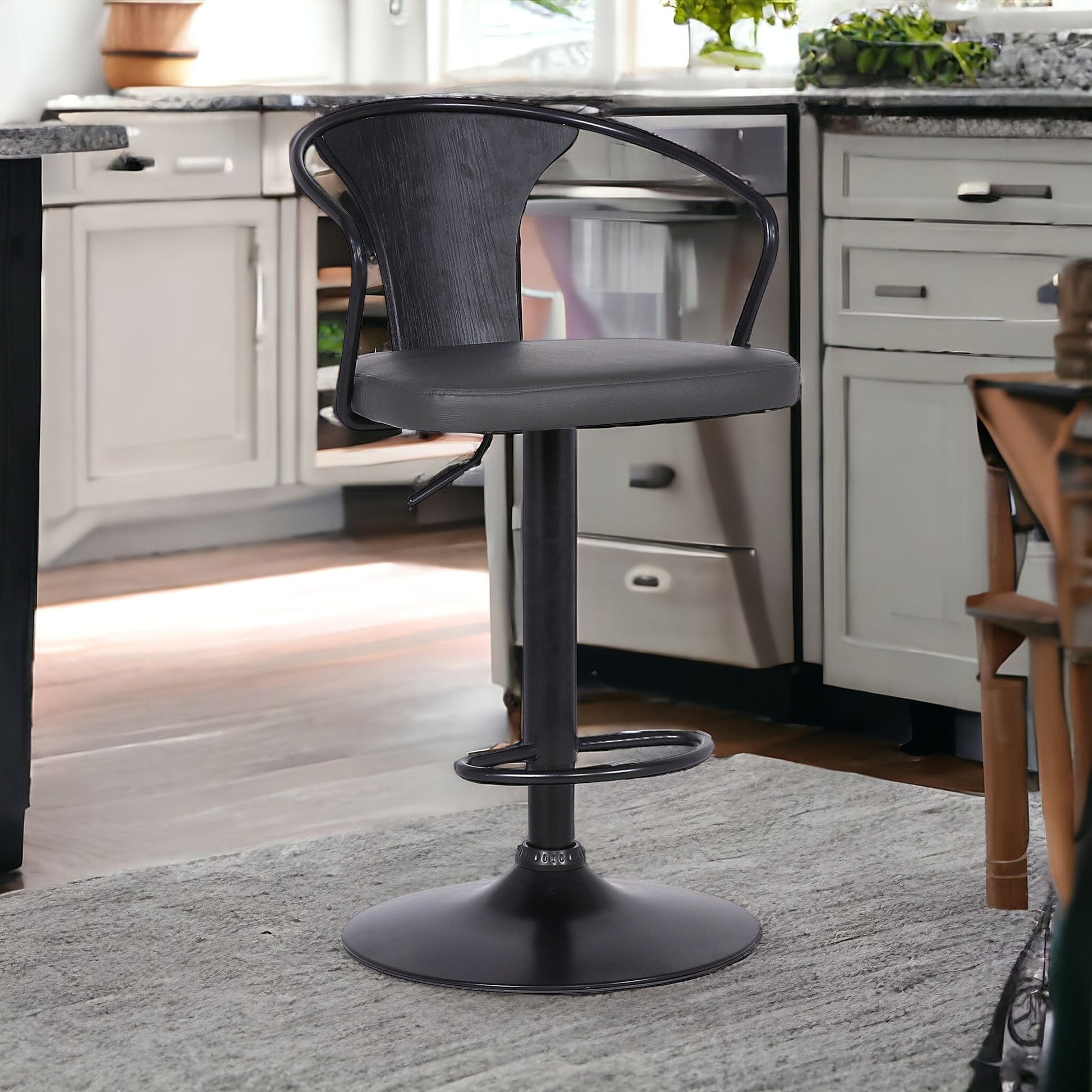 Bring a trendy bar vibe to your space, with this 43" gray and black iron swivel low back adjustable height bar chair with footrest. A black iron frame is finished off with a gray upholstered seat that is the epitome of quality construction and design. Not only good looking and stylish, this chair features a round shaped seat and a low back for the ultimate in comfort and enjoyment. Designed with armrests for your comfort, this chair also features a footrest for comfort and convenience. 43" H x 20" W x 19" D