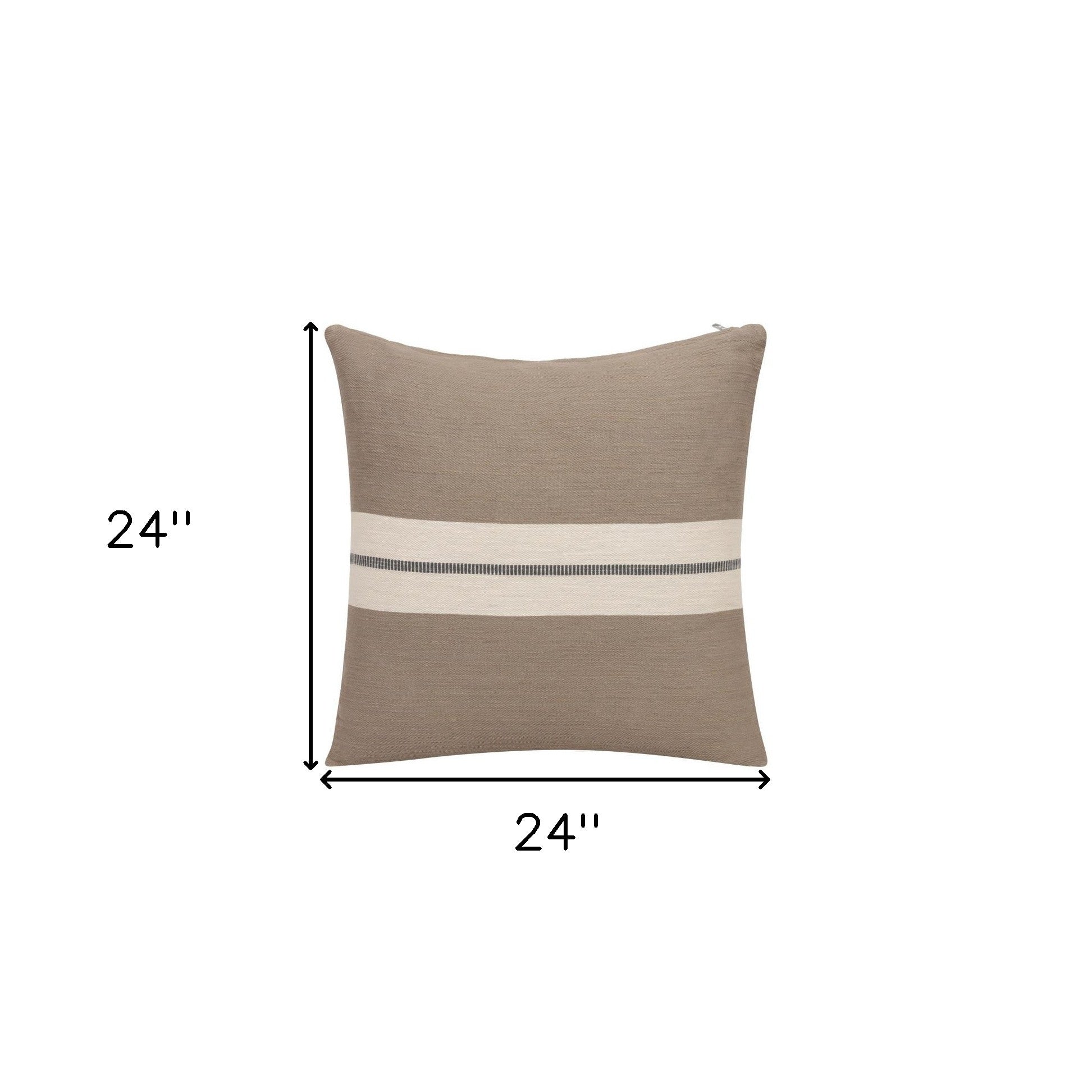 24" X 24" Brown Striped Cotton Zippered Pillow
