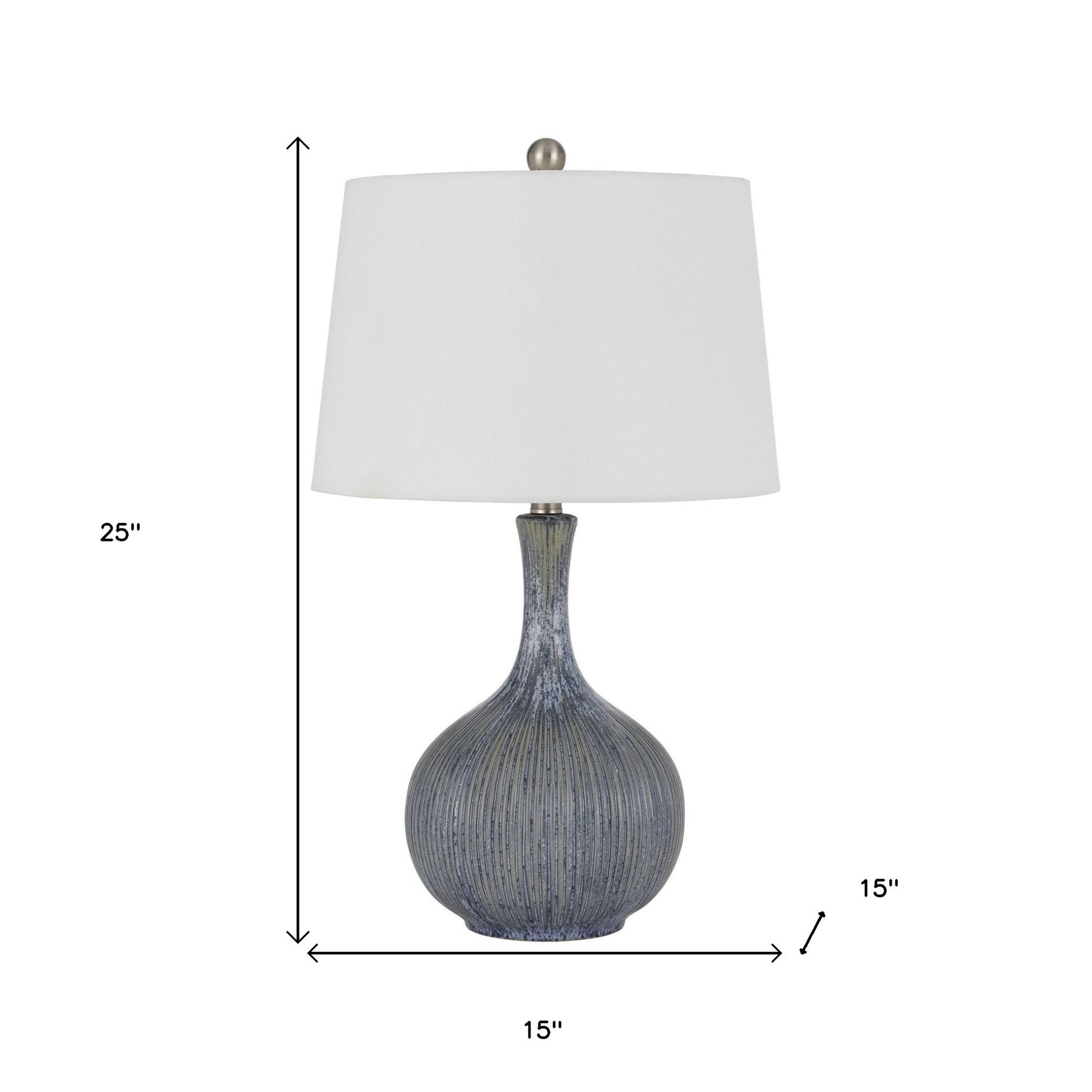 25" Stone Ceramic Table Lamp With White Empire Shade