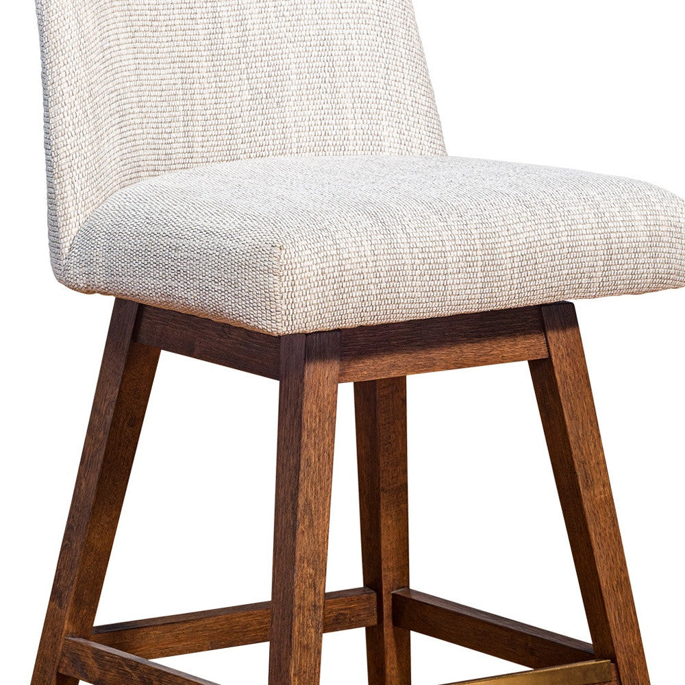 With this 26" beige and brown solid wood swivel bar chair with footrest you can add design and extra seating to your space. A brown solid wood frame is finished off with a beige upholstered seat that is the epitome of quality construction and design. 37.5" H x 21.5" W x 19" D