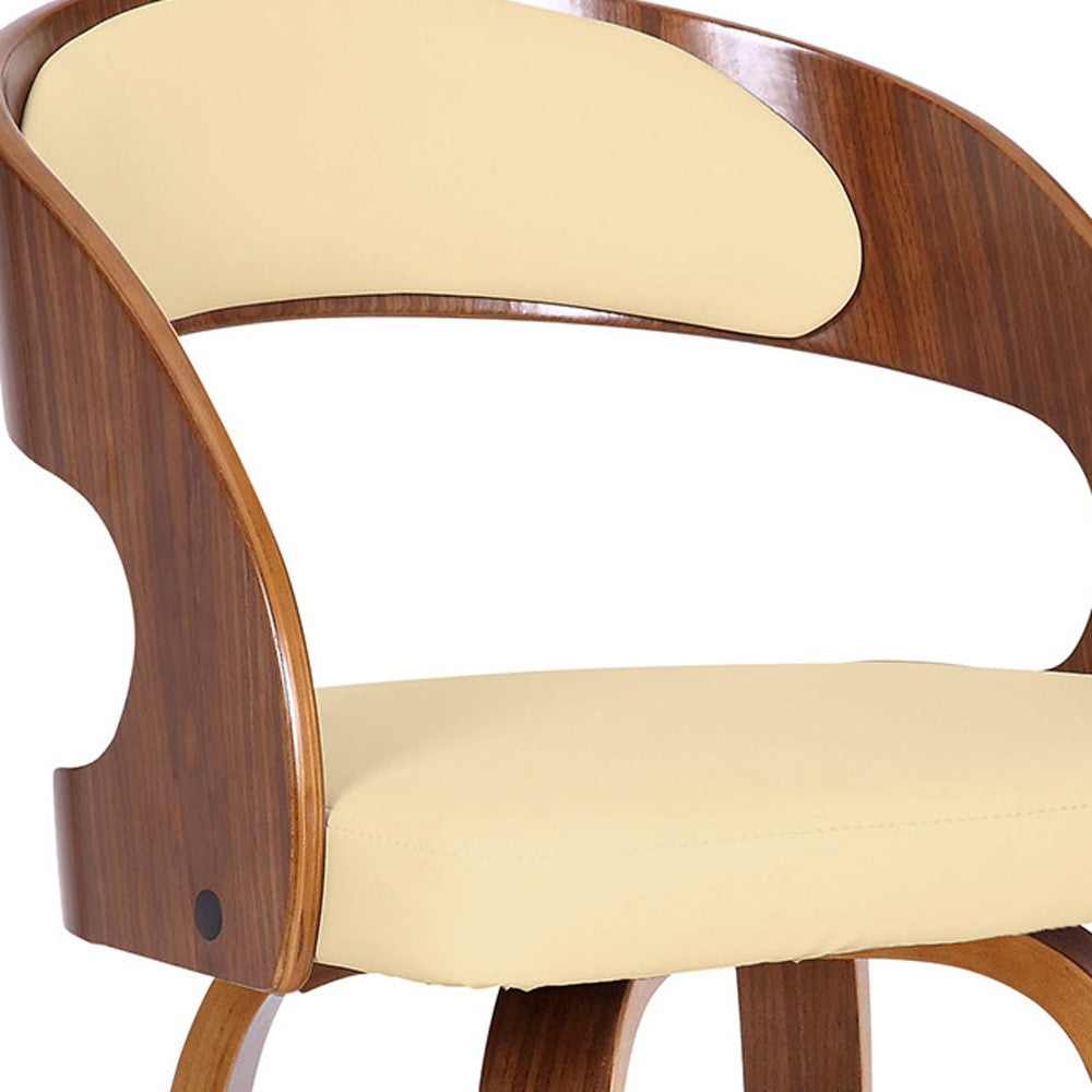 26" Cream And Brown Faux Leather And Iron Swivel Low Back Counter Height Bar Chair