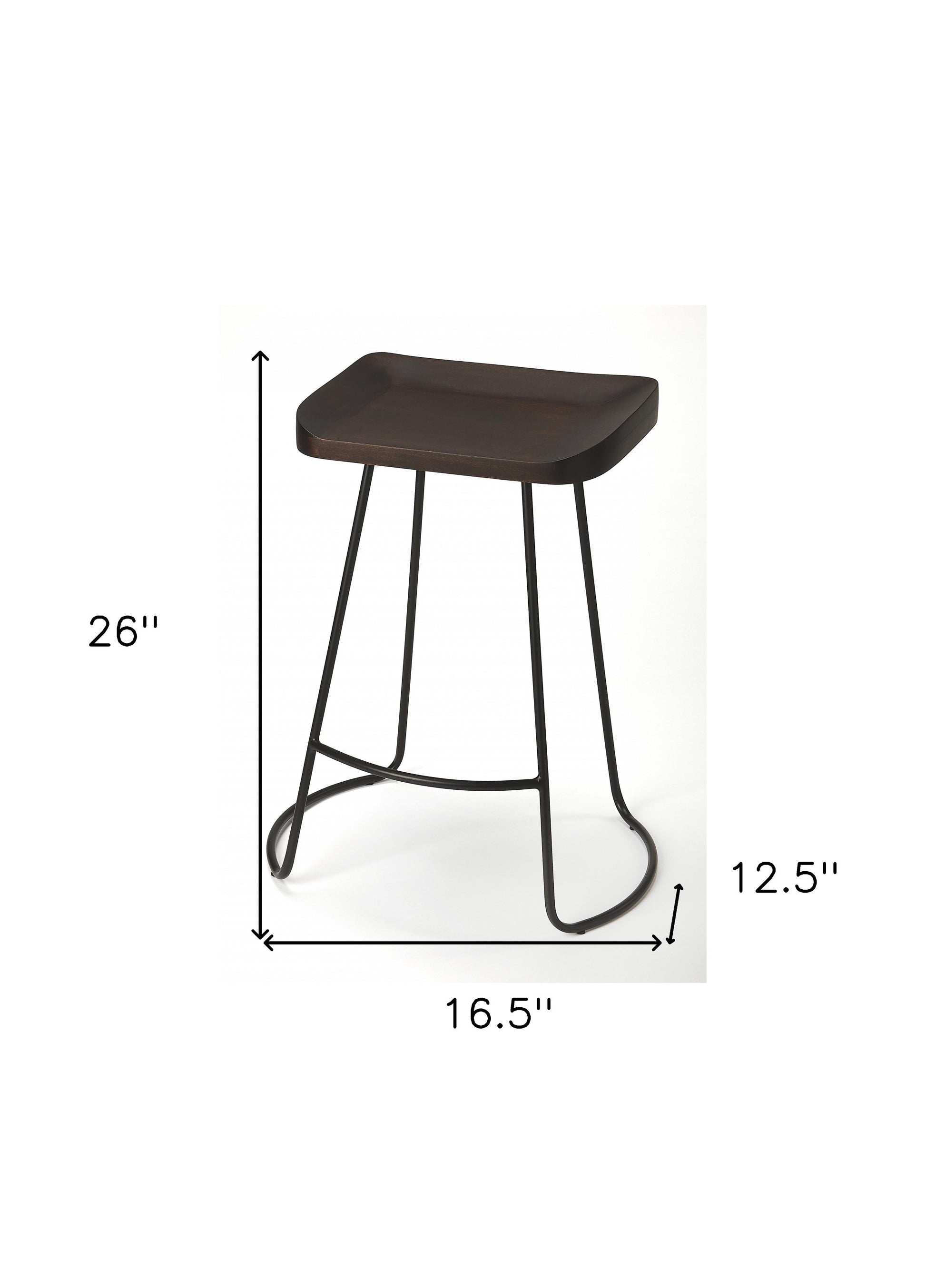 Comfortable enough to sit in for awhile, this 26-inch dark brown and black iron backless counter height bar chair will transcend the look of your room. The base of this stool is made from solid wood in a black color that is a nice contrast to the dark brown manufactured wood seat. Designed to be good looking and practical, this backless bar chair features a rectangle shaped seat. A great seating option, this stool will bring a unique look to any room. 26-inch H x 16.5-inch W x 12.5-inch D