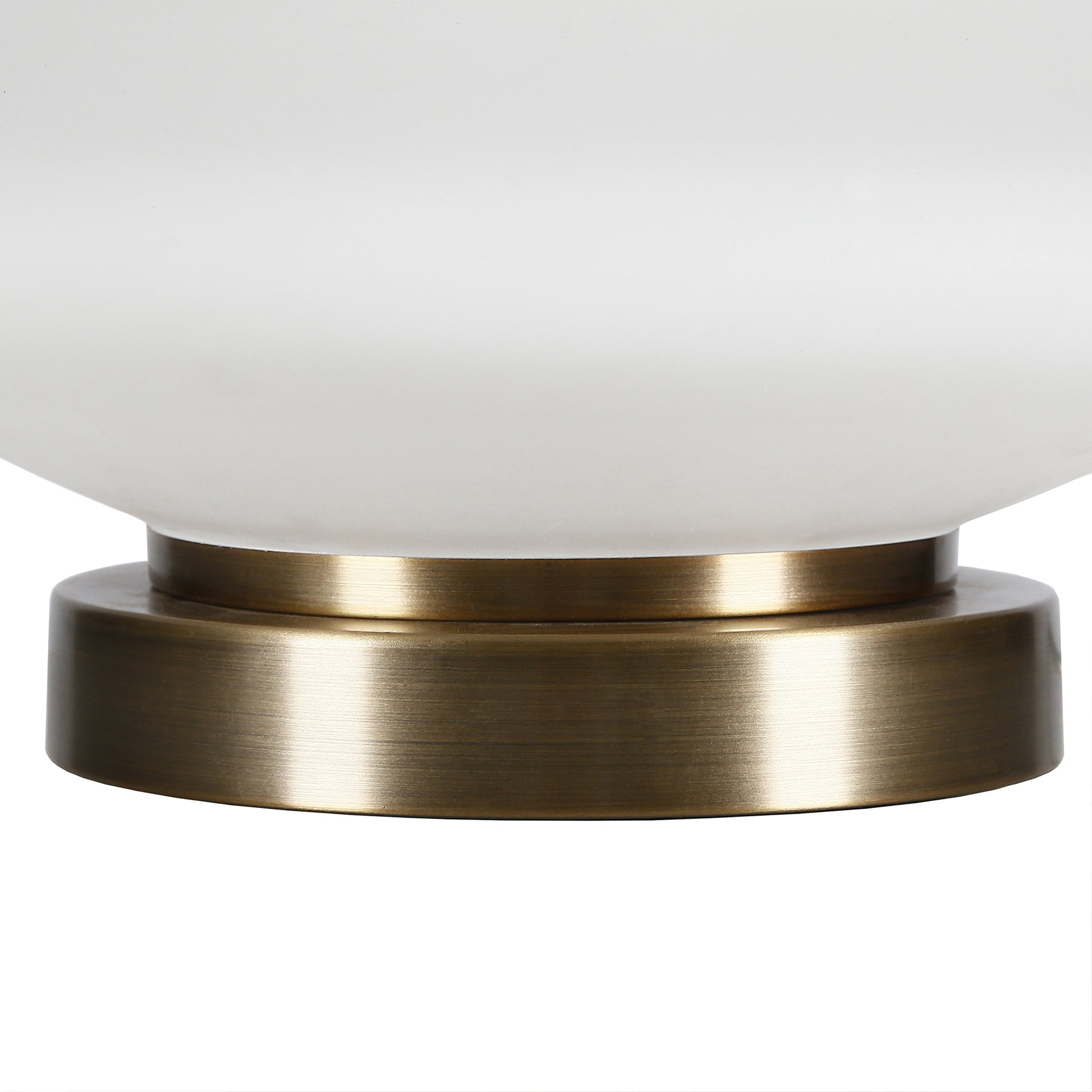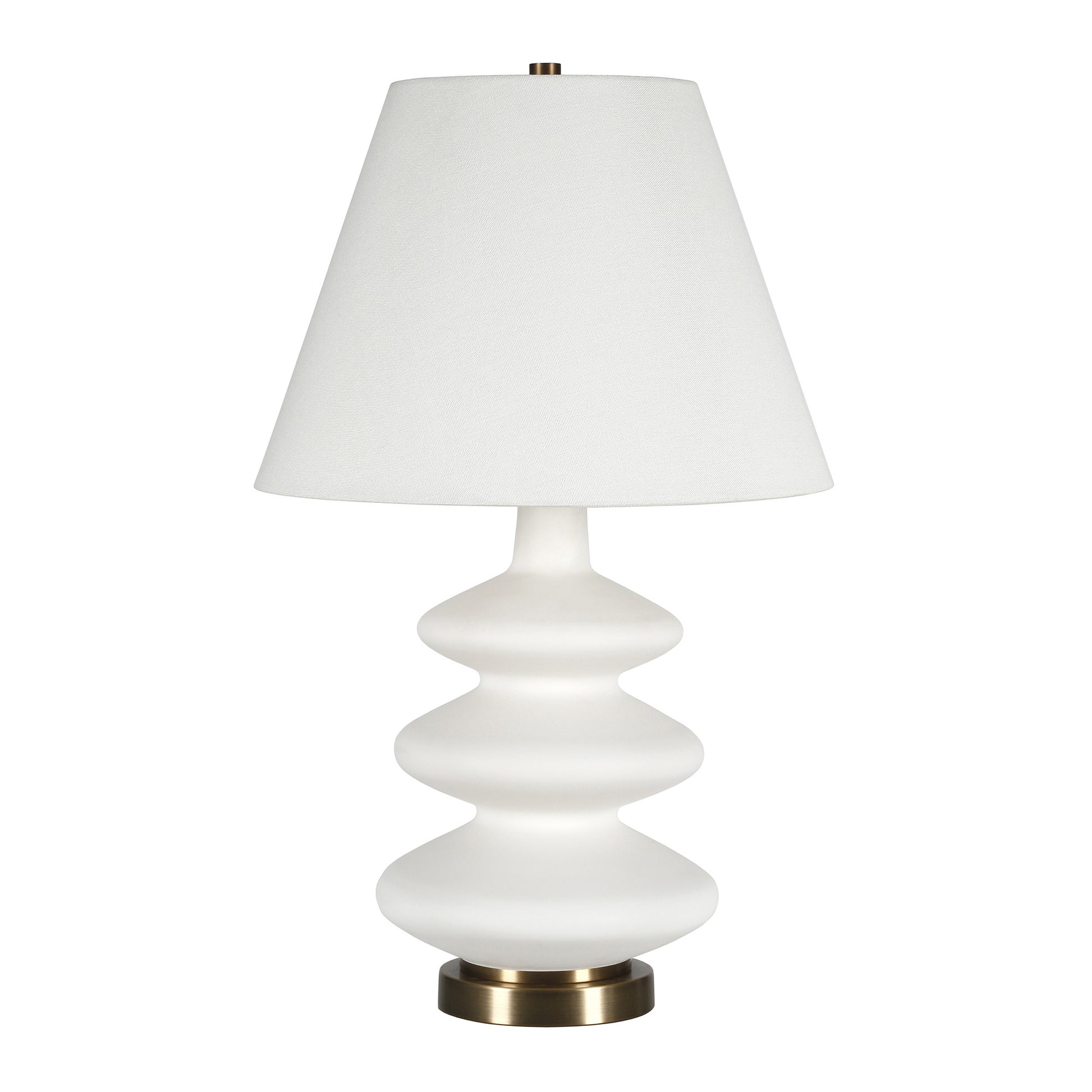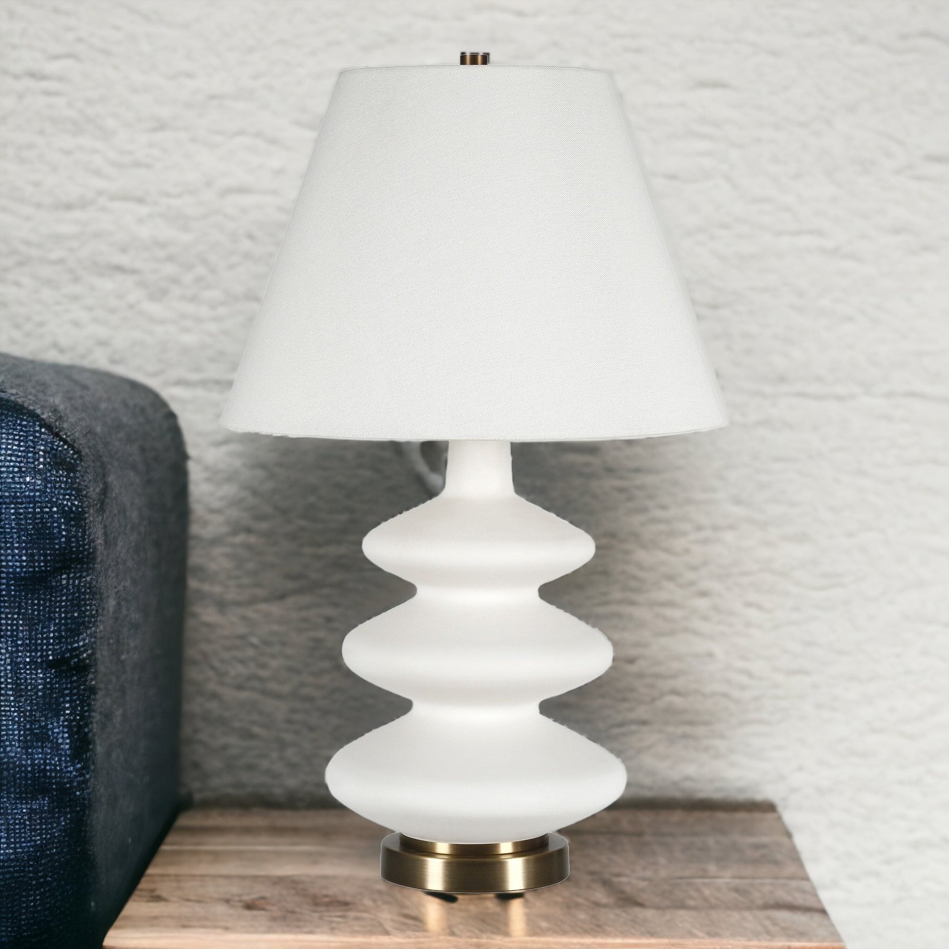 26" Gold and White Glass Table Lamp With White Empire Shade
